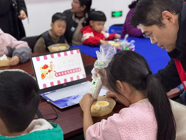 制作前,烘焙师现场示范裱花、抹面、配色等技巧,分步演示制作手法。孩子们瞪大好奇的眼睛,跃跃欲试,家长们也纷纷拿起工具,化身“烘焙助教”。在轻松欢快的氛围中,一场关于甜蜜与艺术的创作悄然展开。