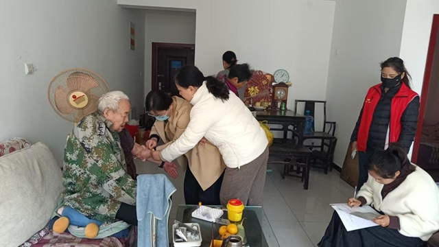 针对行动不便的老人,社区工作人员与医护人员组成上门服务小队,携带体检设备逐一登门拜访。在老人家中,医护人员细致完成血压测量、抽血等检查,详细告知健康状况及注意事项,同时叮嘱家属做好日常照护,用脚步丈量民情,将健康服务送到老人心坎上。
