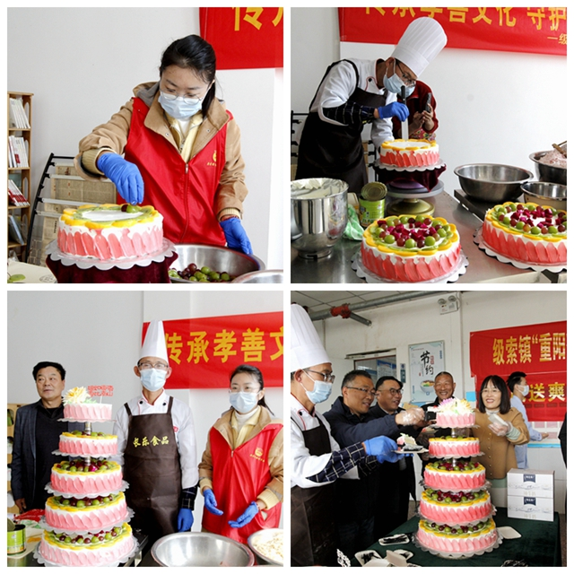 在敬老爱老志愿服务区域,来自各部门和社会组织的志愿者们忙碌不停。蓝卡造型的志愿者耐心地为老人们理发、修剪指甲,陪老人们唠家常,详细询问老人们的身体状况和生活需求,用贴心的服务让老人们感受到了家人般的温暖。卫生院的医护人员则为老人们进行免费体检,测量血压、血糖,细致地为老人们讲解健康保健知识,针对老人们的身体状况给出专业的健康建议,守护老人们的身体健康。长乐蛋糕房志愿者王斌带着特制工具来到敬老院,为老人们做了一个五层蛋糕,顶端插着“福如东海,寿比南山”的美好祝福。