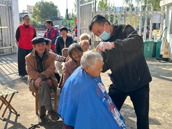活动现场暖意融融,秩序井然。在义剪区,志愿者朱西成耐心询问老人对发型的要求,一边精心修剪,一边亲切交流。他娴熟的技术和热情的服务,赢得了老人们的一致称赞。义诊区内,志愿者宋磊细致地为村民测量血压、检测血糖,提供健康咨询,并针对秋季常见病预防、慢性病管理等进行科普宣传,引导村民树立科学健康的生活理念。