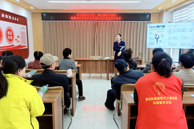 金秋送爽,又逢重阳。为弘扬中华民族尊老敬老的传统美德,关爱辖区老年人身体健康,10月29日,荆河街道赐宴街社区联合济宁银行在社区活动室为老年朋友们精心组织了一场别开生面的健康知识讲座。