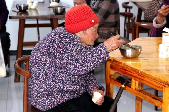 幸福楼村戏曲表演精彩纷呈,台下老人们看得津津有味,掌声不断。演出结束后,志愿者们为每位老人端上热气腾腾的羊肉汤,老人们围坐一堂,席间欢声笑语与鲜香滋味交织,共同汇聚成一副和谐动人的重阳暖景。