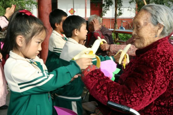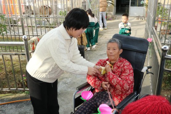 活动现场洋溢着浓厚的温情。小朋友们身着整齐的服装,认真表演手语操《中华孝道》,稚嫩的手势中满是对长辈的敬意;老师们表演的歌曲《珊瑚颂》、舞蹈《映山红》等节目赢得阵阵掌声,让老人们笑逐颜开。表演结束后,孩子们手捧新鲜水果和亲手制作的“福桃”,用稚嫩清脆的嗓音送上温馨祝福:“爷爷奶奶重阳节快乐,祝你们健康长寿!”他们还模仿着大人的模样,为老人们捶背捏肩,小手间传递着真挚的关怀。志愿者们则忙碌不已,陪伴老人们闲话家常、聆听往昔故事,手持工具清扫房间、擦拭桌椅,让敬老院的每一个角落都整洁干净、温馨舒适。