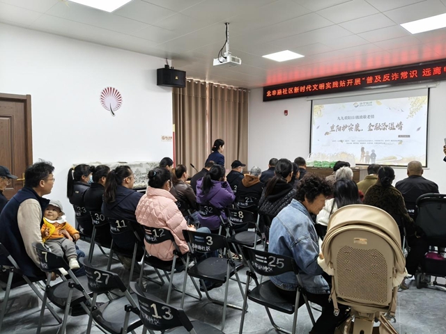 活动现场暖意融融,多项贴心服务同步开展,精准对接老年人需求。活动开始,社区联合银行开展反诈知识宣讲,工作人员结合真实案例,用通俗易懂的语言讲解电信诈骗、养老诈骗等常见骗局的防范要点,手把手教老年人识别诈骗套路,帮助大家守好“钱袋子”。