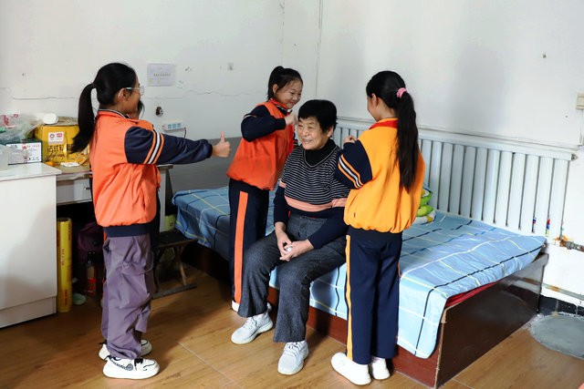 孩子们不仅带来了亲手从学校蚂蚁农场采摘的新鲜蔬菜,更献上了精心准备的歌曲,清脆的歌声赢得了老人们的阵阵掌声。随后,孩子们主动为爷爷奶奶打扫房间、捏肩捶背,并围坐在老人身边亲切聊天。老人们脸上洋溢着幸福的笑容,有的还紧紧拉着孩子的小手,不舍得放开,场面温馨感人。
