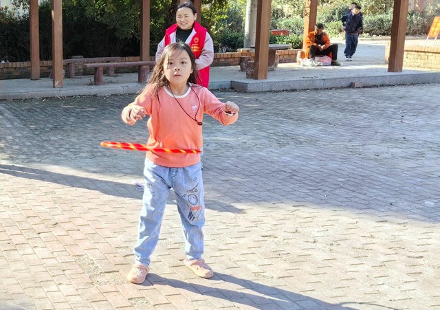 呼啦圈比赛项目同样精彩纷呈,趣味横生。有的孩子腰间的呼啦圈如同被施了魔法,在腰间平稳旋转,划出一道道优美的圆弧;有的孩子则随着圈摆动,有趣的姿势引得大家开怀大笑。
