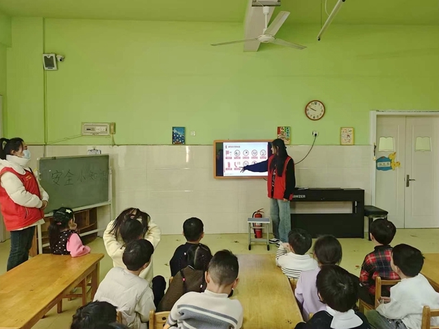 活动由社区志愿者与幼儿园老师共同主持,通过PPT从“火灾的危害”“常见的火灾隐患”“火场逃生小技巧”等方面展开讲解,重点教孩子们认识消防车、灭火器、烟雾报警器等消防器材,牢记“119”火警电话的拨打要点。孩子们积极举手回答问题,现场互动氛围十分热烈。