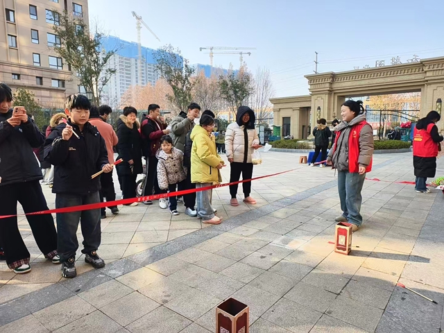投壶作为一项跨越千年的传统体育运动,深受大众喜爱。活动中,社区志愿者向居民们介绍了活动规则及注意事项。大家按照规则,拿着箭羽进行投掷,他们在不断的调整手腕姿势和站位,全神贯注,找准角度,投中了,赢得满堂喝彩,没投中,迎来加油声,大家在相互鼓励中各显身手,整场活动充满趣味性,气氛十分热烈。