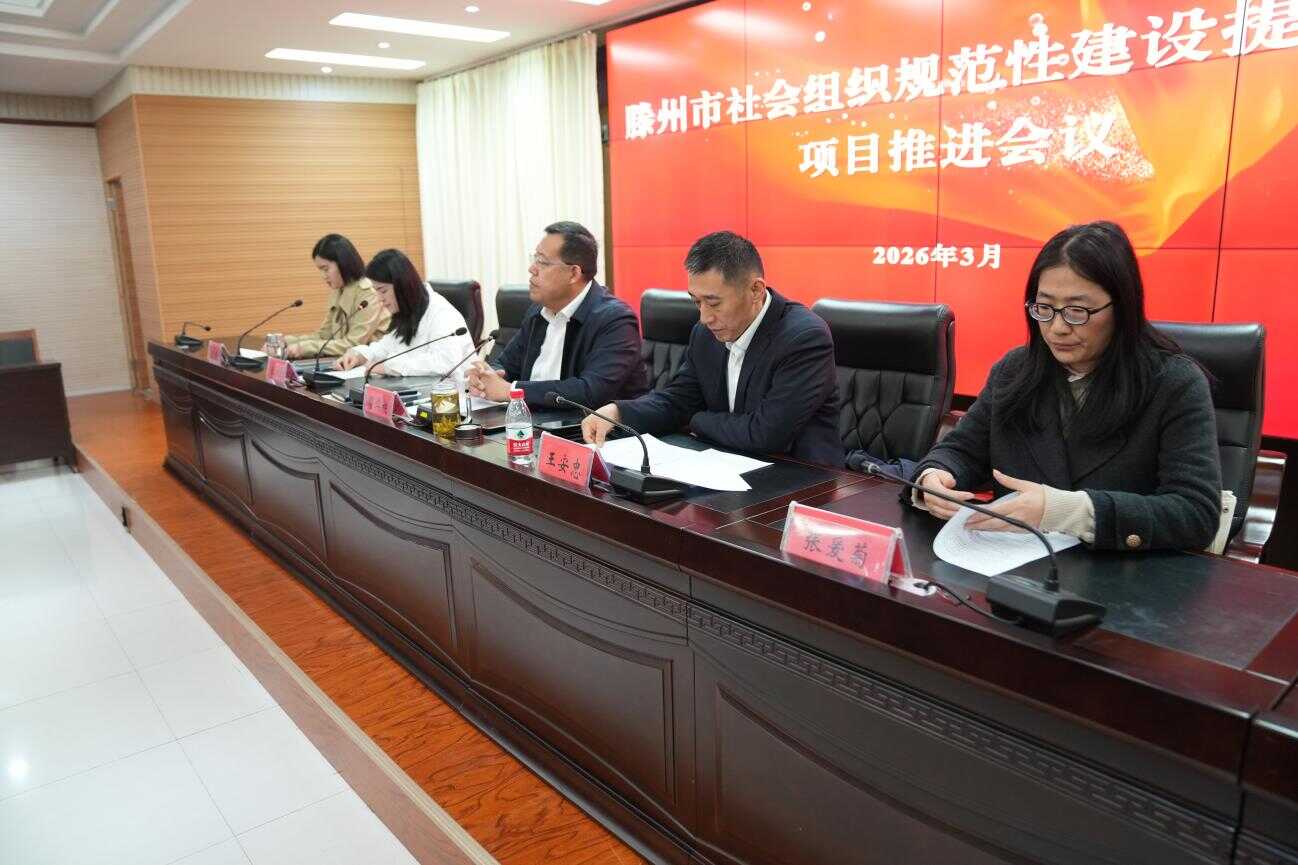 3月27日,滕州市社会组织规范性建设提升服务项目推进会议在市民政局四楼会议室召开。滕州市民政局党组书记、局长翟华栋,滕州市民政局党组成员王励欣,项目承接机构山东省社会组织总会党委书记、会长王安忠,山东省社会组织总会综合部主任张爱菊,山东省社会组织总会宣传部主任段群出席,各镇街民政事务岗主管,20家社会组织负责人和业务人员参加会议。