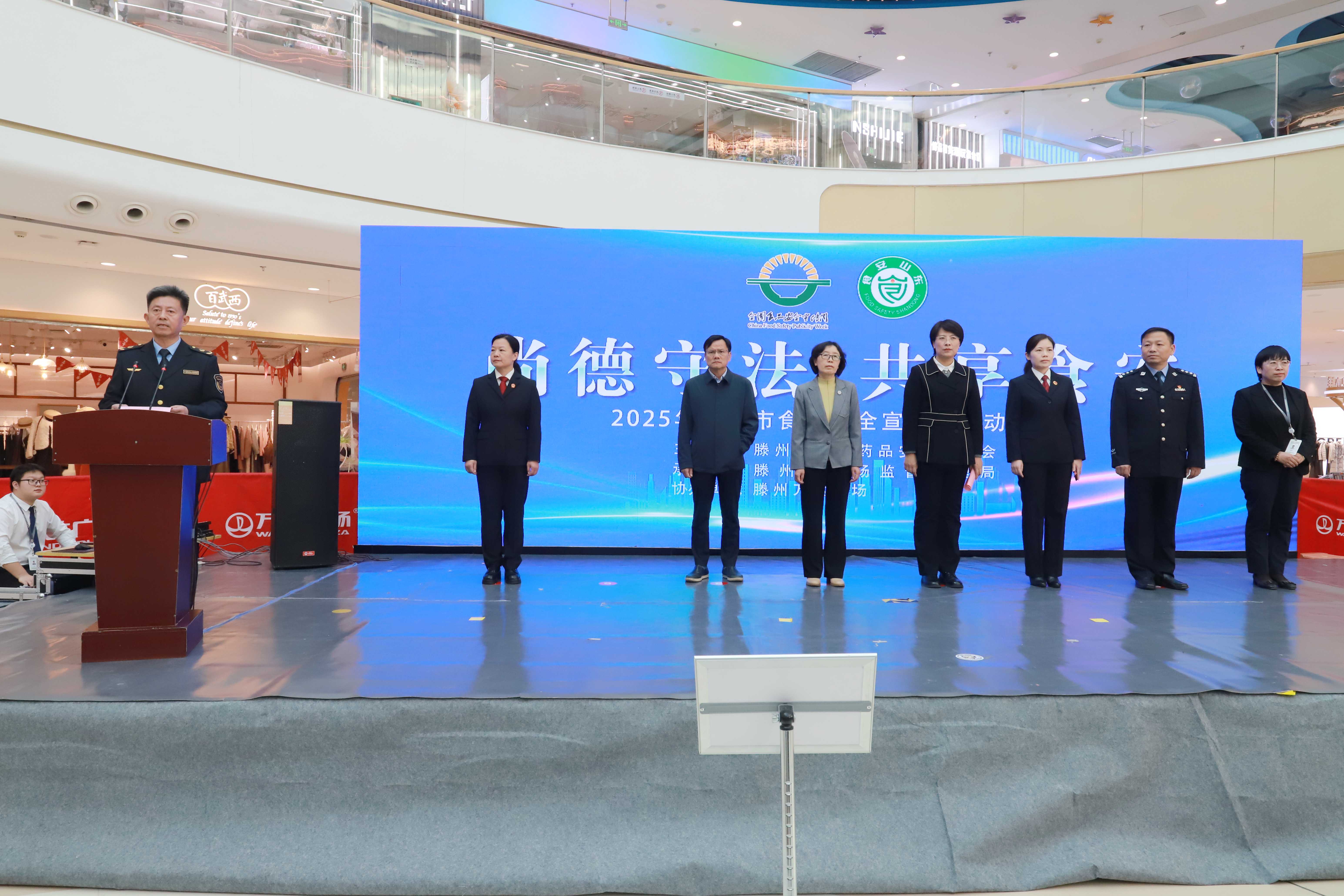 10月23日上午,滕州市启动2025年全国食品安全宣传周活动。市人大常委会副主任孔凡华,市政府副市长刘琳,市政协副主席董鸿洋,市检察院检委会专职委员杨文静,市公安局党委委员、指挥中心主任王正轩,市法院政治部副主任张亚丽,滕州万达广场商业管理有限公司总经理徐翠云,市食药安委成员单位、各镇街分管负责同志、各市场监管所所长、网格员、外卖骑手(食安哨兵)、企业代表等参加活动。活动由市食药安办主任、市场监管局局长陈凡锋主持。