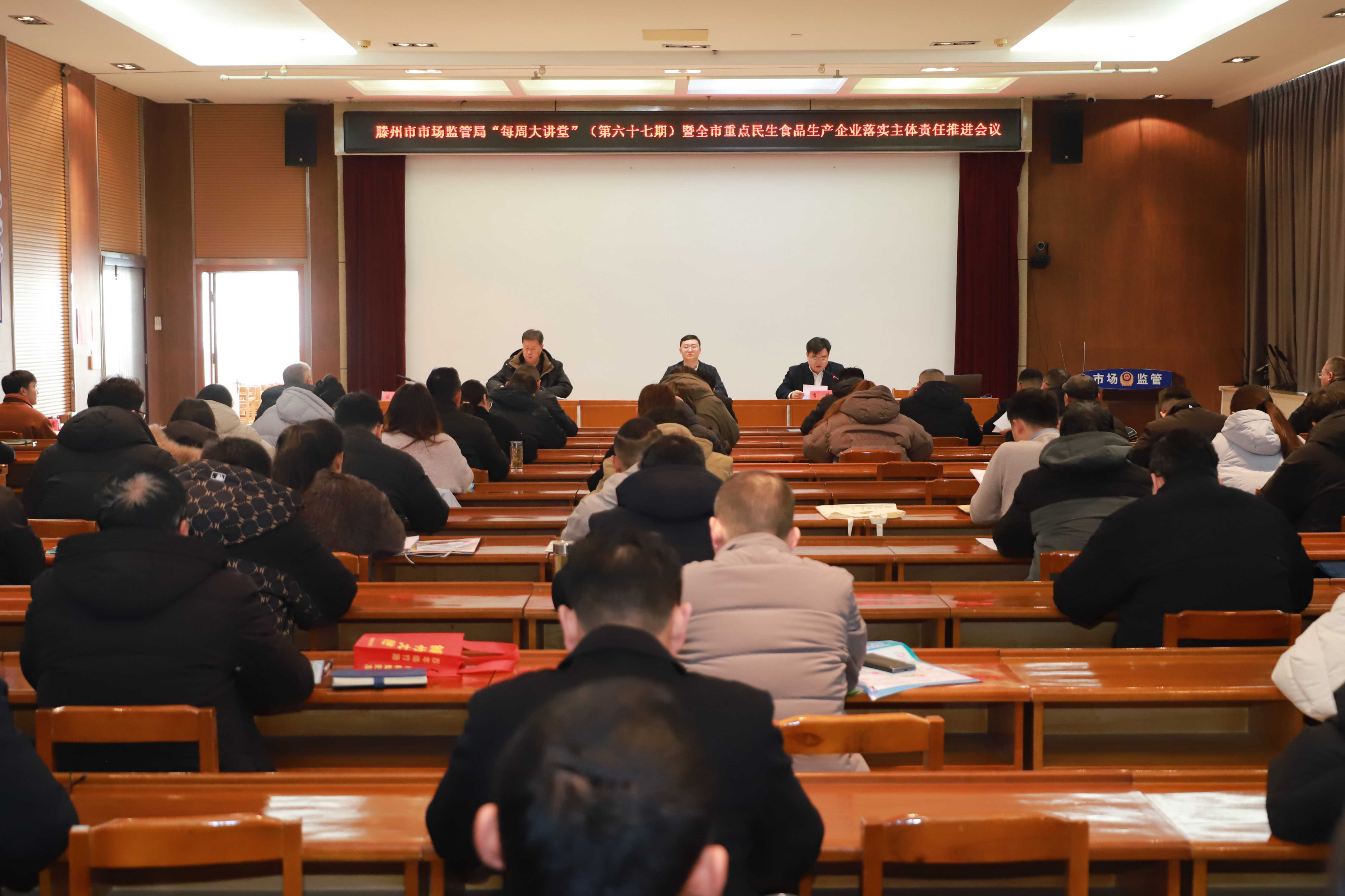 新春将至,为持续筑牢食品安全防线,营造平安祥和的节日氛围,1月28日,市市场监管局召开“每周大讲堂”(第六十七期)暨全市重点民生食品生产企业落实主体责任推进会议。党组成员单泉森、各市场监管所食品监管人员、食品生产科全体人员及全市80余家重点保供食品生产企业负责人参加会议。协管领导李峰主持会议。