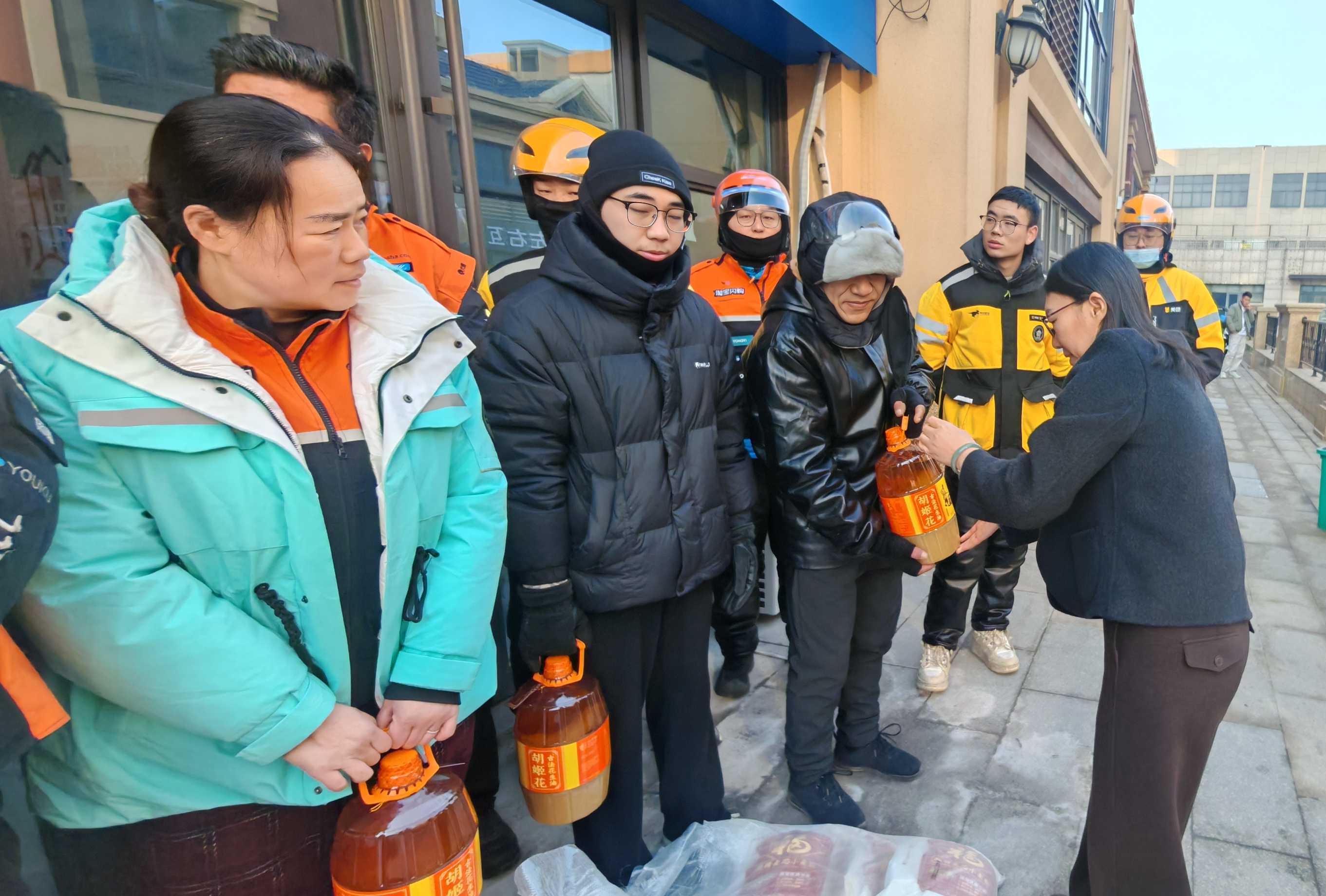 滕州市总工会党组成员、副主席杨琴作动员部署,强调要聚焦新就业形态劳动者等群体的急难愁盼,精准服务,做实关怀。滕州市网约配送行业党委作为我市外卖配送行业从业者的“主心骨”和“娘家人”,与相关行业工会联合会同志奔赴慰问点,询问他们的日常工作强度、防寒保暖措施及面临的困难,对他们不畏严寒、穿梭城市、服务市民的辛勤付出表示充分肯定和衷心感谢。随后,慰问组将满载着关怀的米、面、油等慰问物资发放到18名困难骑手手中。