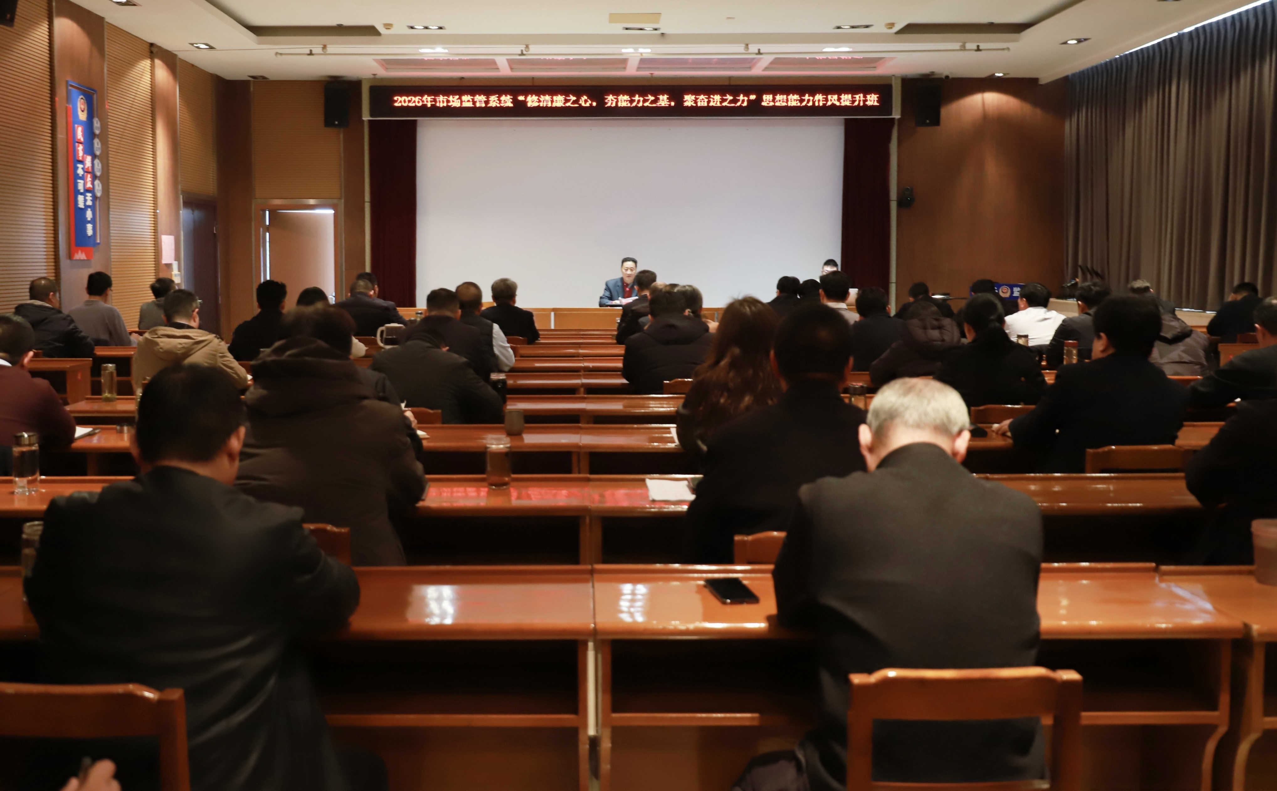 2月27日,市市场监管局举办2026年市场监管系统“修清廉之心,夯能力之基,聚奋进之力”思想能力作风提升班第三课《全媒体时代突发事件处置与舆情管理》。局领导班子全体成员、科级以上领导干部,机关各单位主要负责人及副职在主会场参加培训;综合检验检测中心、各市场监管所设分会场,以视频形式收听收看。局党组成员、副局长颜道立主持会议。
