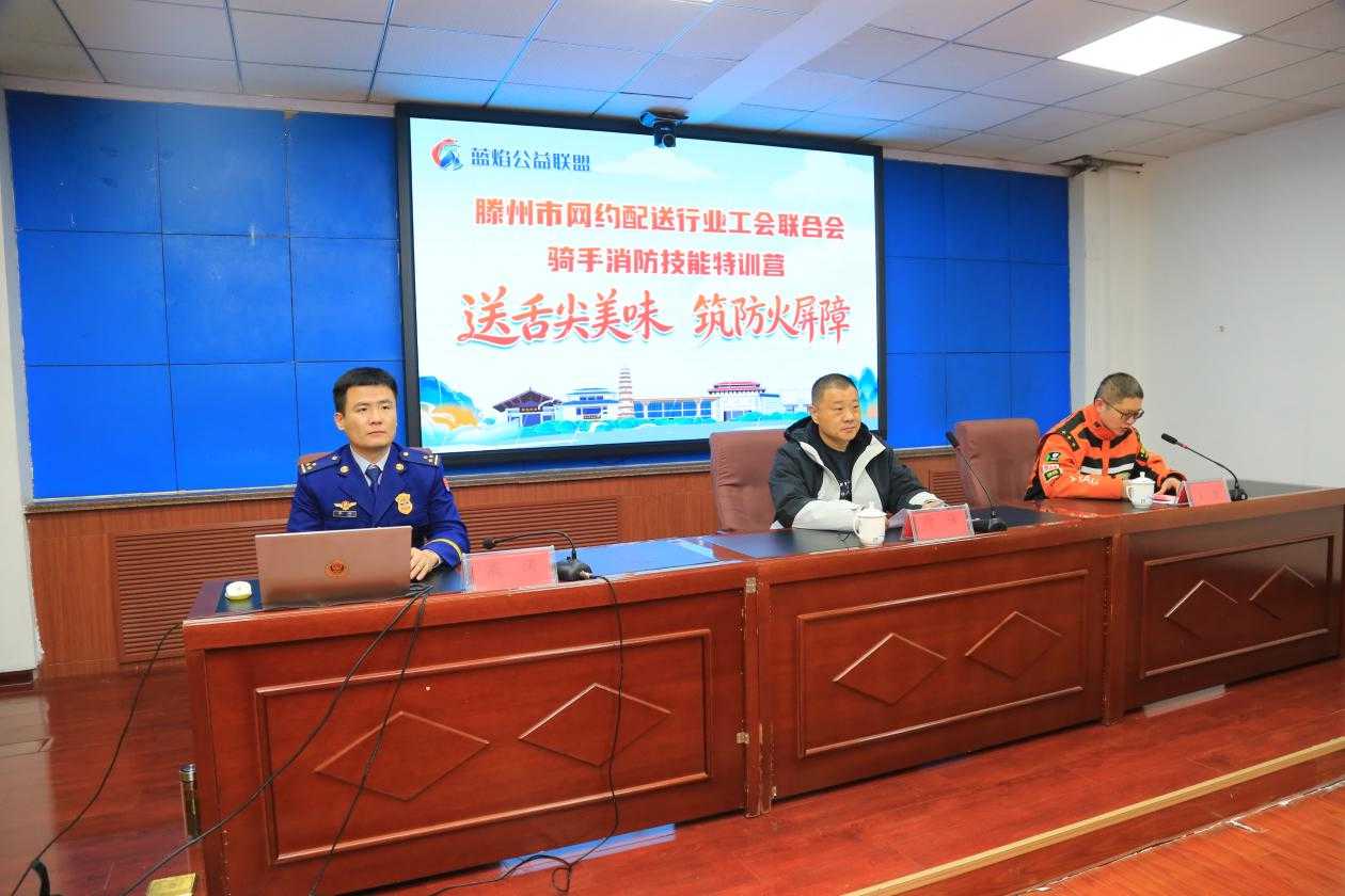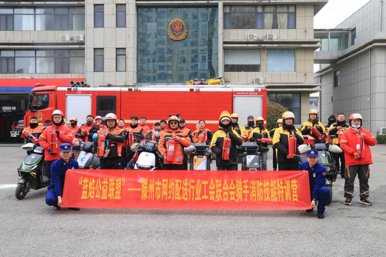 为扎实推进“蓝焰公益联盟”专项行动,切实发挥党建引领作用,凝聚网约配送行业力量参与基层消防治理,2月28日,滕州市网约配送行业党委联合蓝焰公益联盟、市外卖行业工会联合会、市消防救援大队、市市场监管局,在北辛消防救援站成功举办骑手消防技能特训营,来自淘宝闪购、美团、京东外卖的30名骑手代表参加培训,为城市消防安全注入“新”力量。