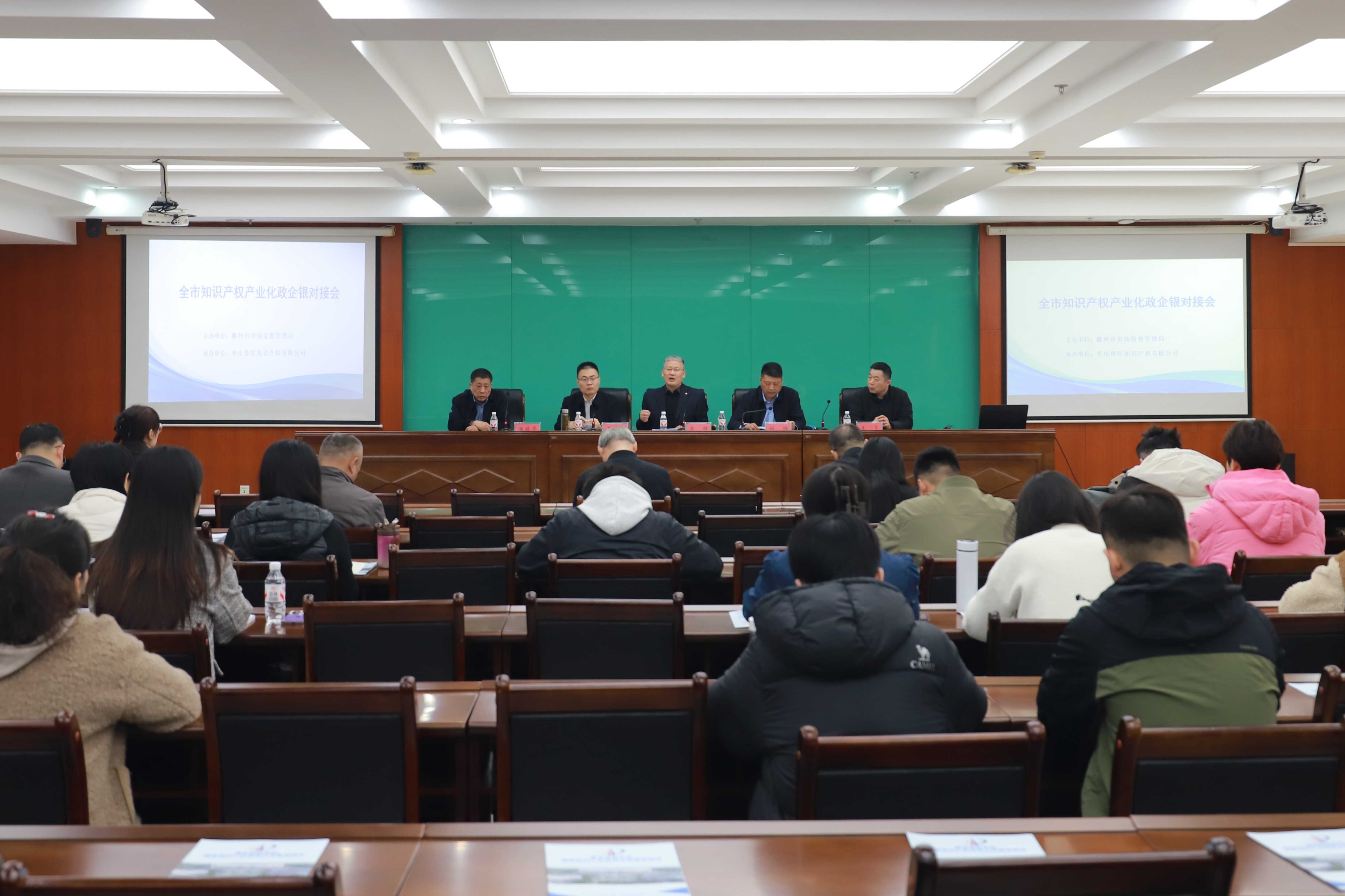 为认真贯彻落实党中央、国务院关于大力推动知识产权产业化的决策部署,纵深推进“服务企业年”活动,深化政银企合作,推动更多“知产”变“资产”、“专利”成“红利”,助推我市经济高质量发展,3月24日,全市知识产权产业化政银企对接会在市人才创新驱动中心举办。市科技局党组成员、市人才创新驱动中心主任朱辉,枣庄市知识产权协会会长王亮,邮储银行滕州市支行副行长王明明,市市场监管局知识产权科全体工作人员、全市知识产权工作重点企业负责人参加会议,会议由市市场监管局党组成员杜鹏主持。