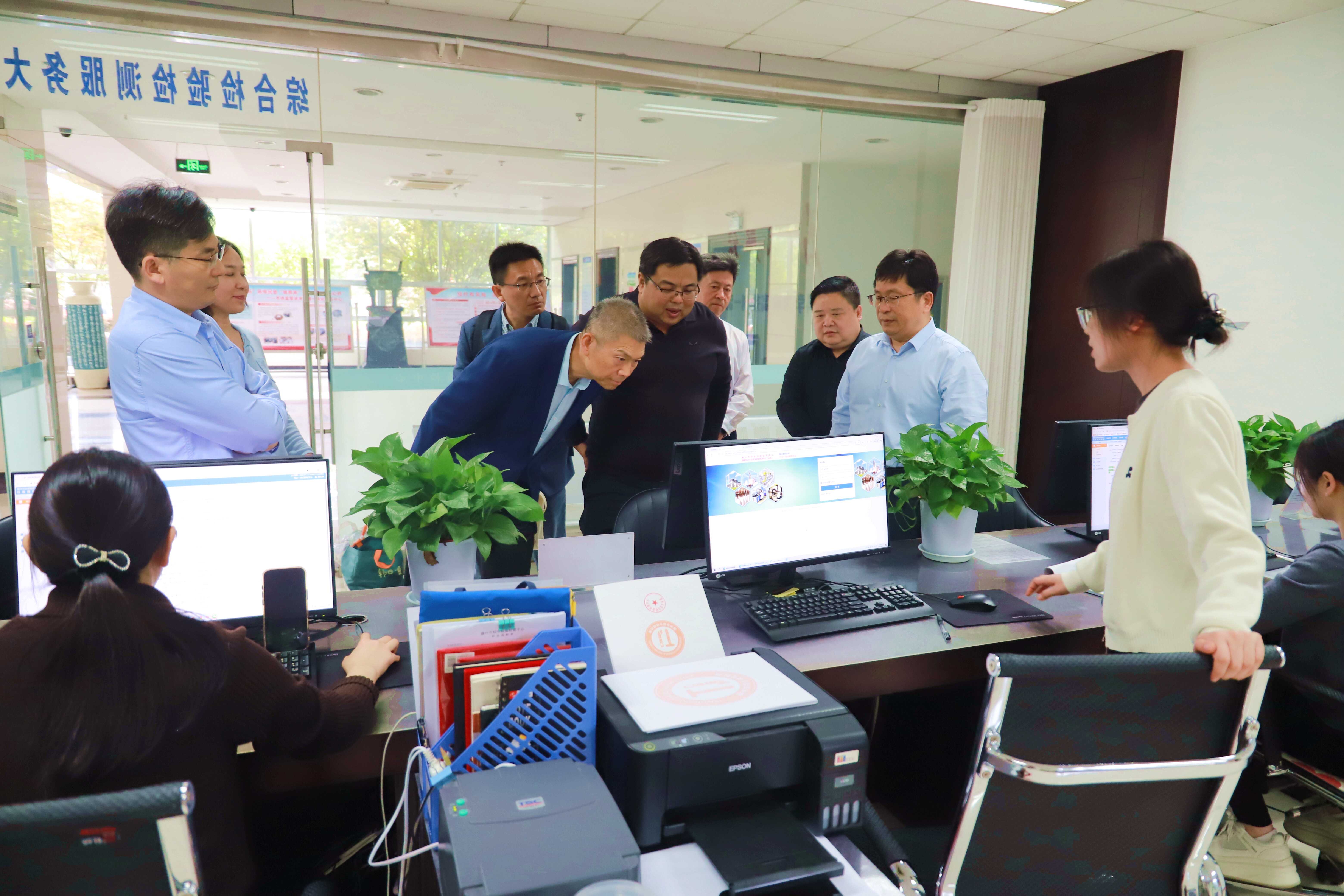 调研组首先来到平台服务大厅,实地查看受理平台运行情况,详细了解窗口设置、业务受理流程、线上线下服务衔接、资源整合调度等工作,现场察看检验检测、标准计量、认证认可、技术咨询等一站式服务开展成效,对平台“一窗受理、集成服务、资源共享、高效惠企”的运行模式给予肯定。
