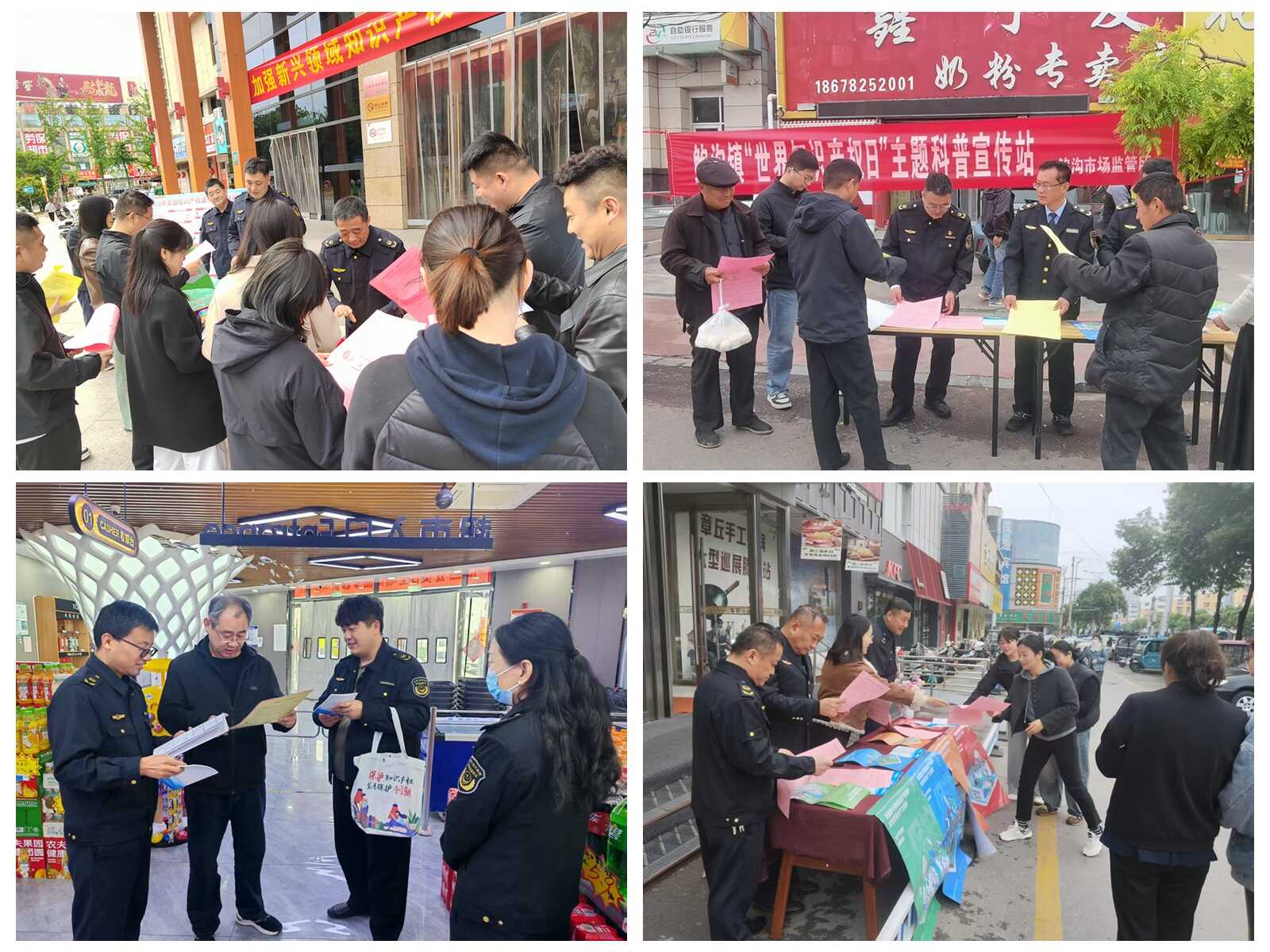 各市场监管所同步在辖区设立宣传站、咨询台,联合司法、金融机构开展知识产权咨询服务、质押融资、维权援助等工作,积极营造“尊重知识、崇尚创新、诚信守法、公平竞争”的知识产权文化氛围,着力构建良好的知识产权舆论环境。