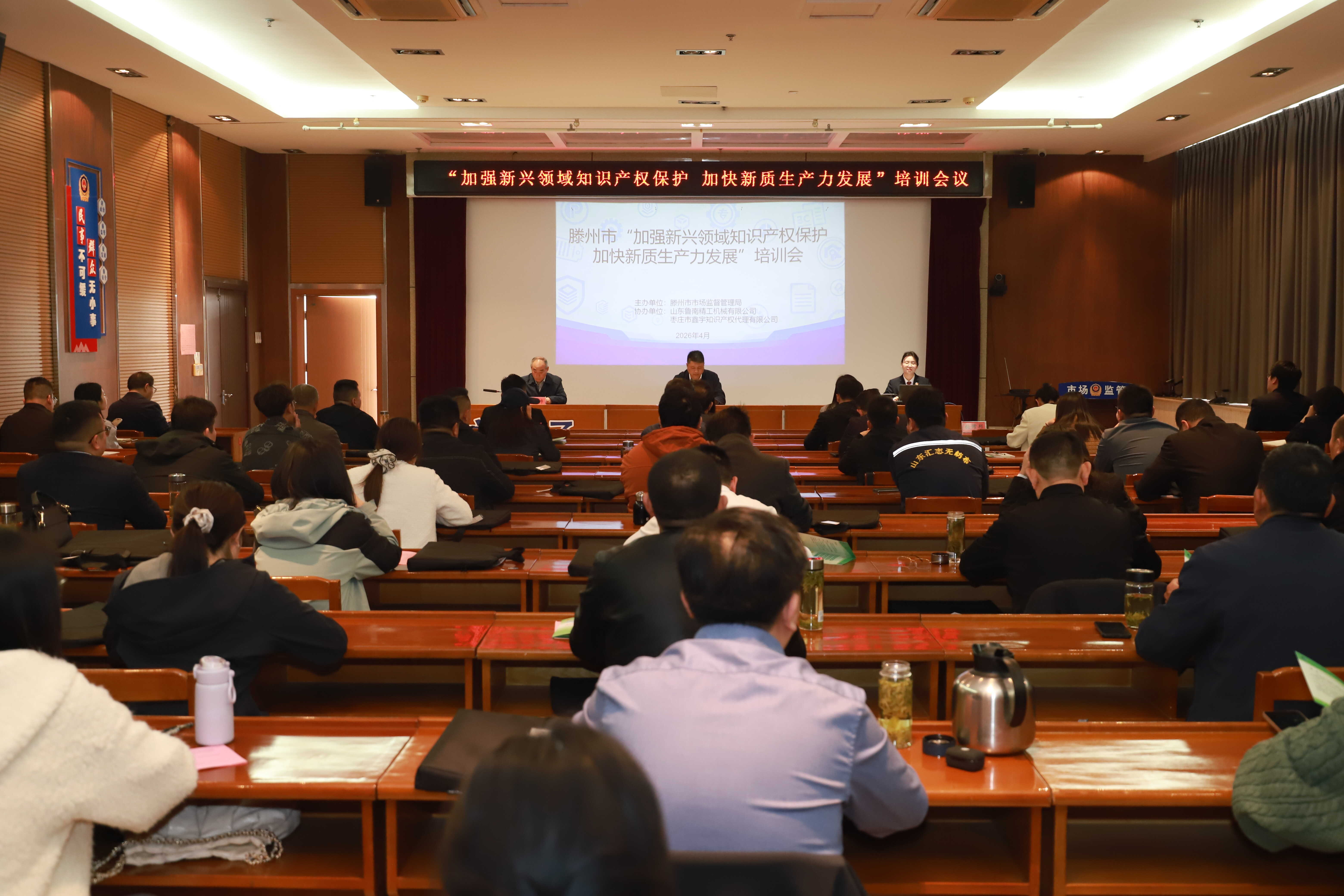 为深入贯彻习近平总书记关于知识产权工作的重要指示精神,纵深推进“服务企业年”活动,持续加强知识产权行政保护,大力提升知识产权保护水平,营造更好的创新环境和营商环境,深化政银企合作,创新知识产权金融服务模式,加快推动我市经济高质量发展。4月23日,市市场监管局举办全市“加强新兴领域知识产权保护,加快新质生产力发展”培训会。市人民检察院知识产权办案团队成员、四级检察官助理陈春光;邮储银行滕州市支行大客户经理张修邦;市市场监管局知识产权科全体人员、各市场监管所分管所长;全市知识产权优势企业负责同志参加会议,会议由市市场监管局党组成员杜鹏主持。