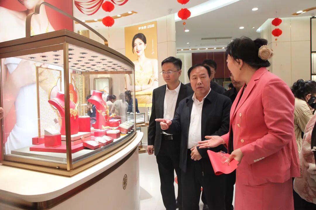 启用仪式结束后,与会领导参观了银河珠宝滕州店,和企业负责人详细了解经营产品和种类。