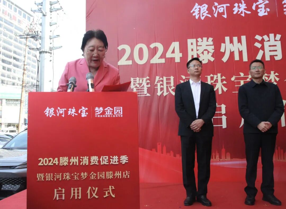 11月17日,2024滕州消费促进季暨银河珠宝滕州店启用仪式在荆河街道举行。市商务和投资促进局党组书记、局长宗兆波,荆河街道党工委书记李启顺,市综合行政执法局党组成员、市综合行政执法大队大队长张显峰,市市场监督管理局党组成员、价格监督检查和反不正当竞争科科长杜鹏,荆河街道党工委副书记、办事处主任刘涛等出席仪式。梦金园黄金珠宝集团营销中心总经理贺舟峰,滕州银河珠宝公司总经理孙海燕等应邀参加活动。荆河街道相关部门负责人、经销商及客户代表,滕州市银河珠宝公司工作人员等参加活动。荆河街道党工委副书记、办事处主任刘涛主持仪式。滕州市银河珠宝公司总经理孙海燕介绍了企业有关情况,荆河街道党工委书记李启顺进行了致辞。