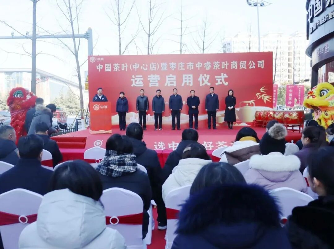 12月28日,中国茶叶(中心店)暨枣庄市中睿茶叶商贸公司启用仪式举行。市商务和投资促进局党组书记、局长宗兆波,市市场监督管理局党组书记、局长陈凡锋,市粮食和物资储备中心党组书记、主任葛全振,市综合行政执法局党组成员、综合行政执法大队队长张显峰,龙泉街道党工委副书记、办事处主任张维维等出席活动。中茶(北京)连锁商业有限公司总经理戚强,中粮名庄荟国际酒业有限公司销管总经理王文娟,山东睿库集团董事长丁杰等应邀出席活动。中粮名庄荟、中国茶叶品牌商代表、合作方代表以及市商务和投资促进局、龙泉街道机关干部等参加活动。