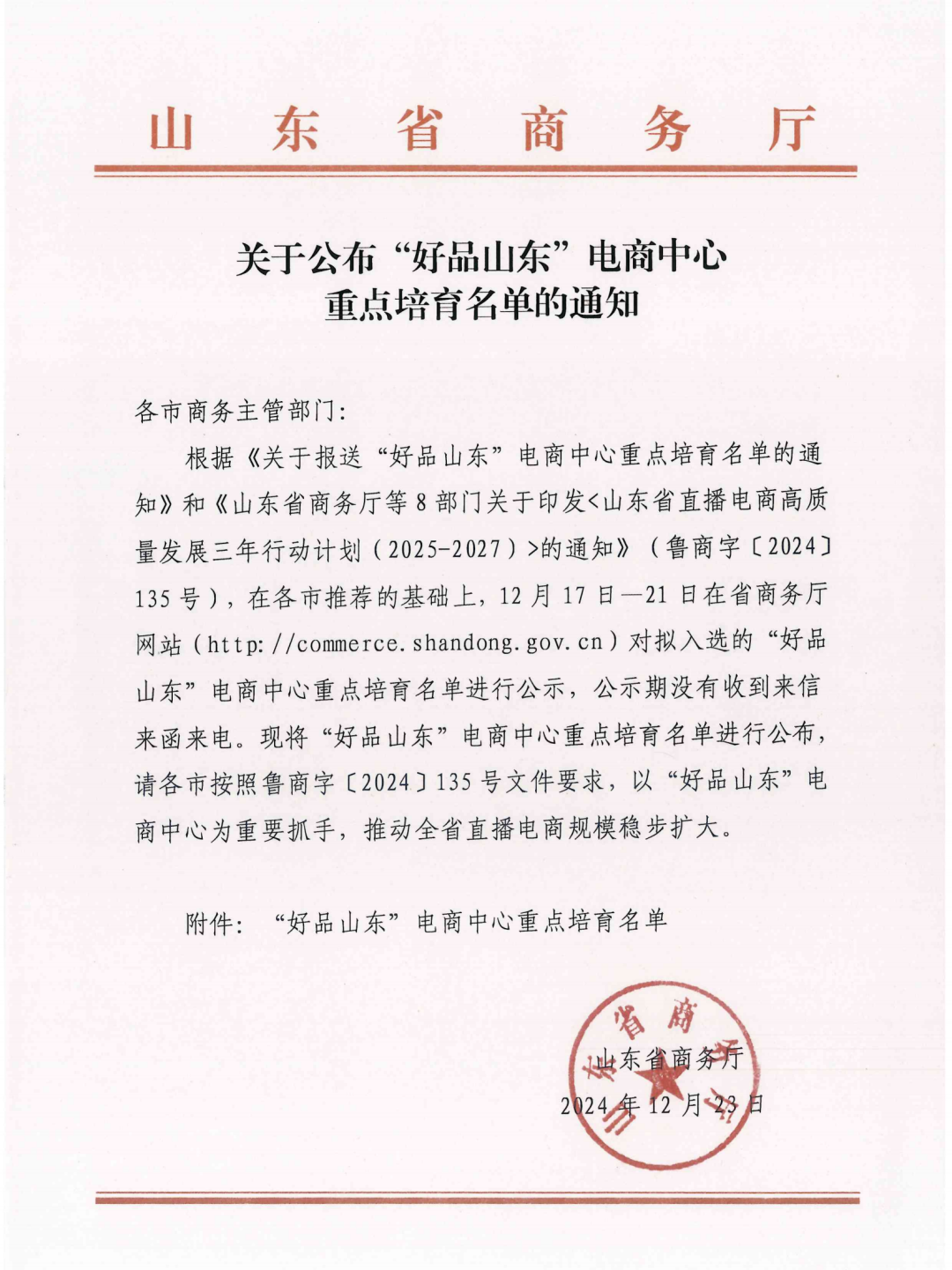 近日,省商务厅公布了“好品山东”电商中心重点培育名单,全省共57家入选,枣庄市3家,其中滕州市2家,分别为:美铭电商中心、滕州电商公共服务中心。