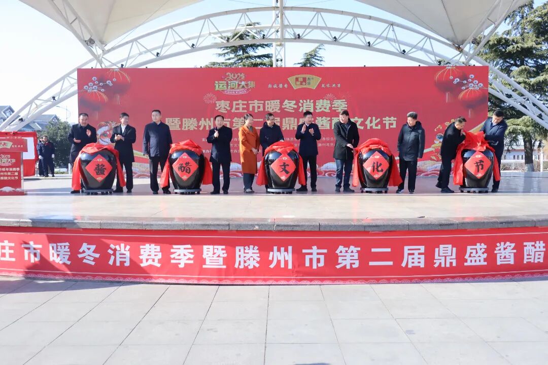 与会领导共同启动“枣庄市暖冬消费季暨滕州市第二届鼎盛酱醋文化节”。