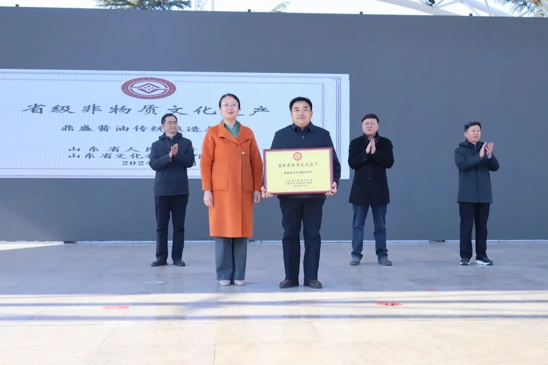 仪式上,还为获得“山东省第六批省级非物质文化遗产代表性项目-鼎盛酱油传统酿造技艺”的滕州市鼎盛酿造有限责任公司授牌,为2024年获得省级电商直播基地、供应链基地、直播电商企业授牌。