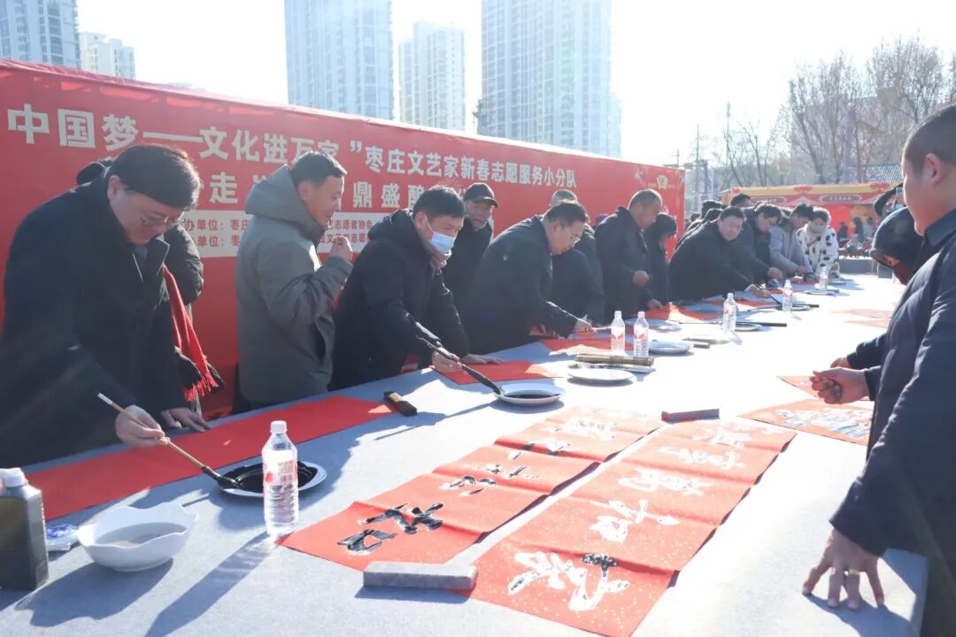 1月10日,枣庄市暖冬消费季暨滕州市第二届鼎盛酱醋文化节启动仪式在龙泉广场隆重举行。枣庄市商务局党组成员、副局长马德春,枣庄市书法家协会主席马德田,滕州市政府党组成员、副市长徐方坤,滕州市政协副主席候选人、滕州市文化和旅游局局长孔磊,滕州市商务和投资促进局党组书记、局长宗兆波,滕州市市场监督管理局党组书记、局长陈凡锋,滕州市善南街道党工委书记庞传军,滕州市综合行政执法局党组成员、综合行政执法大队大队长张显峰,滕州市商业物资行业事务中心党组书记、主任史孝峰,滕州市荆善园林建设工程有限公司董事长李明,山东福藤食品有限公司董事长谢晋唐等出席仪式。各镇街分管负责同志;参展商户负责人,新闻媒体记者以及市商投局、商业物资系统、善南街道等工作人员参加活动。