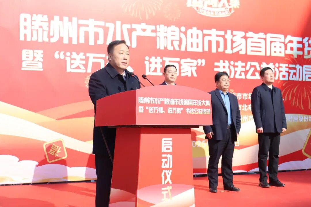 市政府党组成员、副市长徐方坤活动中讲话。他指出,我们按照国家有关部委相继出台的关于加力扩围消费品以旧换新工作的政策要求,积极对接落地工作,及时组织113家企业申报枣庄市2025年家电和手机等数码产品以旧换新补贴活动参与企业,在培育壮大以旧换新市场主体上走在了前列。下一步,我们将按照国家关于做好提振消费工作部署,扎实开展好2025滕州市迎春消费季,不断牵引消费创新,促进消费扩量提质。水产粮油市场承载着百姓生活最基本的需求。此次年货节的隆重举办,是水产粮油市场积极拓展服务功能,践行为人们的生活带来更多的便利和美好宗旨的具体体现。衷心希望水产粮油市场主动发挥“物美价廉、便捷舒心”的经营理念,引导商家拿出品种多样的“年货年品”,积极满足广大消费者“一站式”采购年货的贴心需求,更好为全市消费市场回暖向好贡献力量。