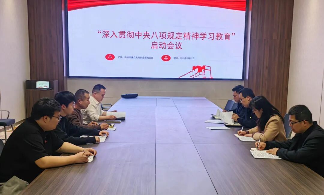 在各支部深入贯彻中央八项规定精神学习教育启动会议上,传达了《中共滕州市委办公室关于在全市开展深入贯彻中央八项规定精神学习教育的通知》,学习了习近平总书记关于中央八项规定精神的重要论述和重要指示精神,贯彻落实中央决策部署和省委、两级市委工作要求,对各党支部开展学习教育进行动员部署。