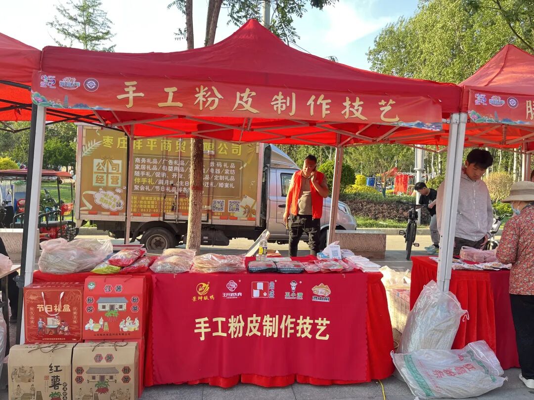 除了电动自行车展销区,活动现场还专门设置了滕州名特优产品展区,张汪景坤板鸭、洪山前正宗小磨香油、鼎盛酱油、巧林榫卯积木、父子炊具、上徐粉条、王开猪头肉、滕薛杨三姐老辣菜等众多具有滕州特色的名优产品纷纷亮相。参展商们通过现场展示、品尝体验、文化介绍等形式,向市民和游客展示了滕州的传统工艺和文化底蕴。许多市民在品尝和了解后,纷纷购买特色产品,既满足了自身的消费需求,又为推广滕州地方特色文化贡献了一份力量。