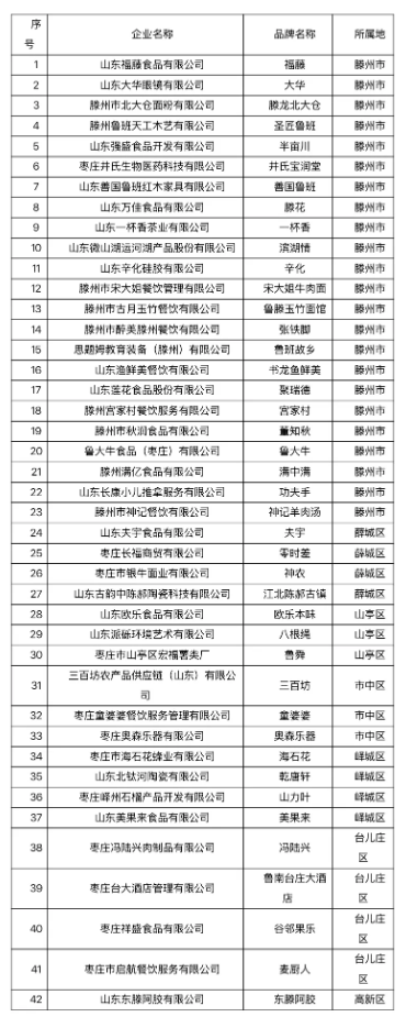 根据枣庄市商务局《关于开展“枣庄老字号”推荐认定工作的通知》相关要求,我市老字号评选工作经过各区(市)商务主管部门的征集、筛选、初审,本着“公平、公开、公正”的原则,经市档案馆、市财政局、市商务局、市文化和旅游局和市市场监督管理局联合评审,认定山东福藤食品有限公司等42个企业品牌入选第四批“枣庄老字号”(名单附后),现予以公示。