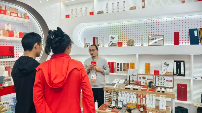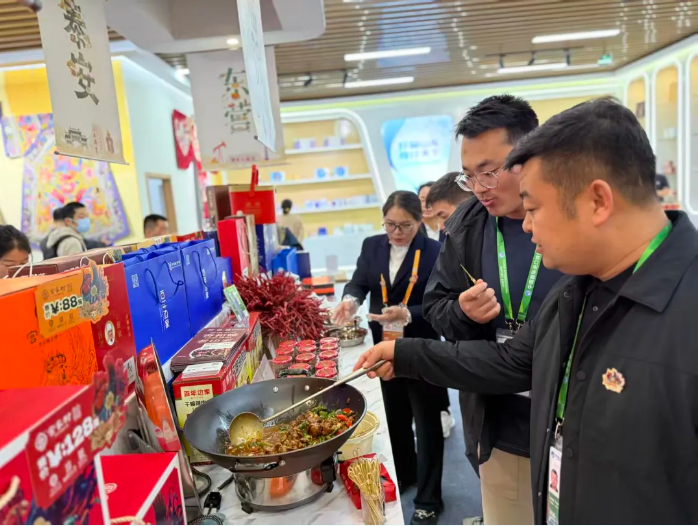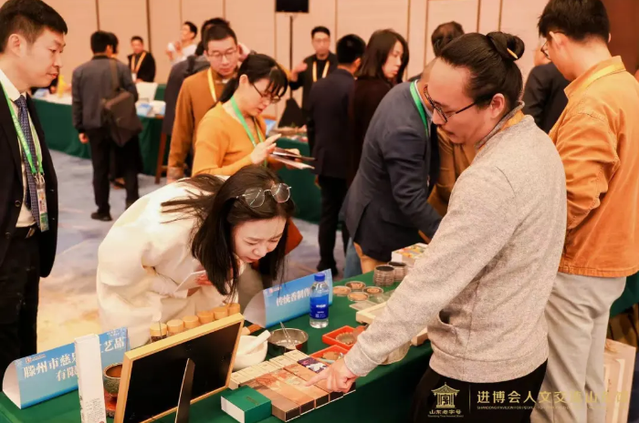 滕州宫家村餐饮服务有限公司主打产品“宫家村辣子鸡”,以醇厚风味与地道口感成为“齐鲁名吃”展区亮点。展会期间累计售出近400份,获海内外客商与观众一致好评,充分体现滕州特色美食的市场认可度。滕州市慈泉斋工艺品有限公司聚焦特色文旅产品推广,成功与内蒙古正元黄芪种植合作社、阿拉善肉苁蓉种植合作社达成合作意向,签订意向订单金额约50万元,为滕州特色工艺品拓展省外市场筑牢基础。