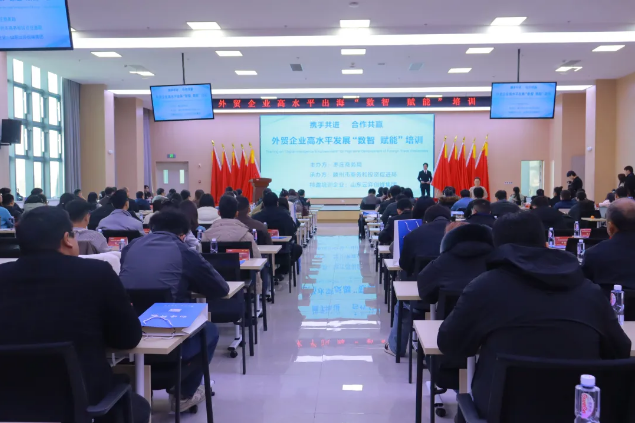 1月28日,外贸企业高水平出海“数智赋能”培训成功举办。枣庄市商务局党组成员、副局长郭立波,滕州市商务和投资促进局党组书记、局长宗兆波,滕州市商务和投资促进局党组成员、市贸促会会长孔祥春等出席会议。滕州市、山亭区商务主管部门分管负责人及业务科室负责人,全市外贸新业态主体负责人等参加活动。