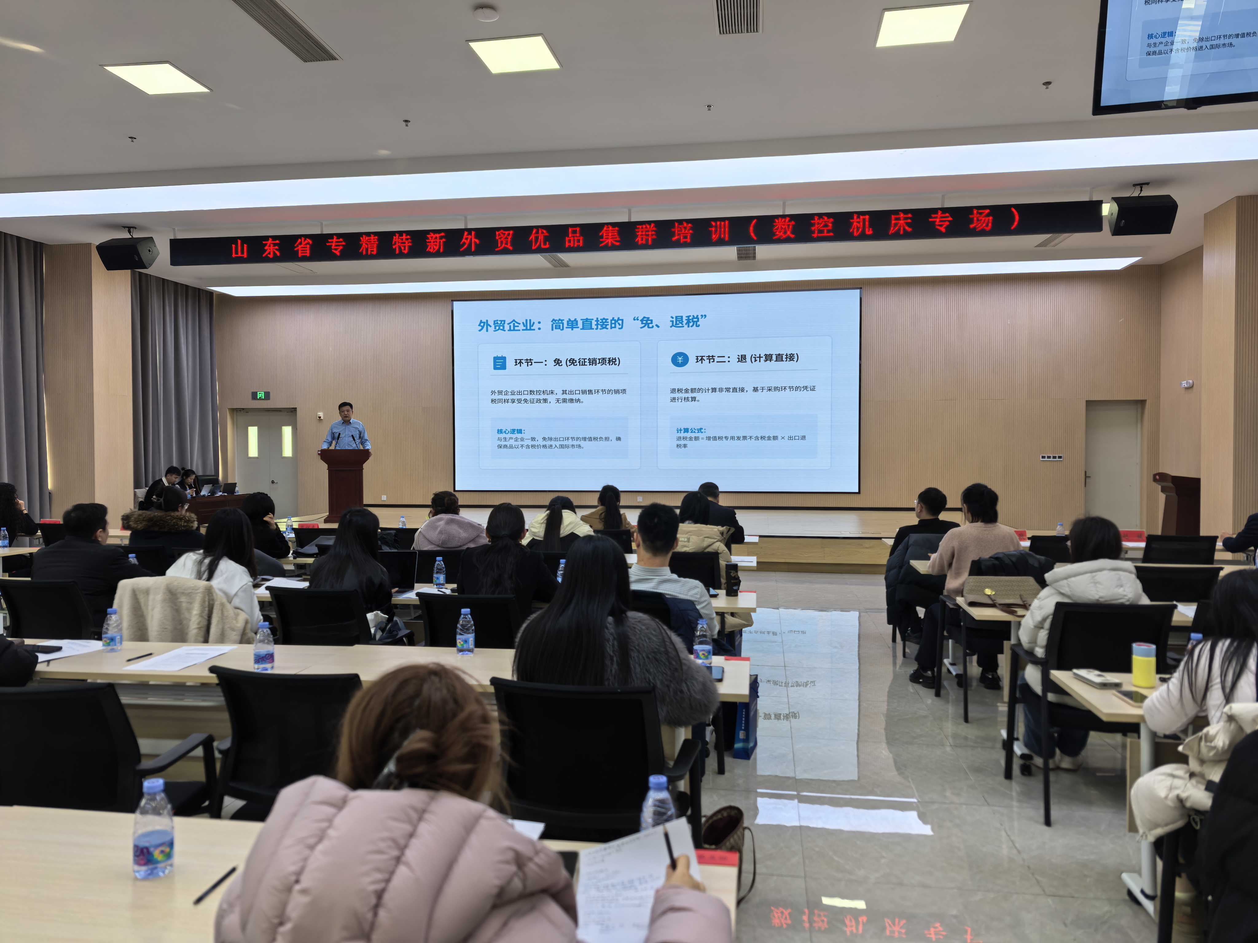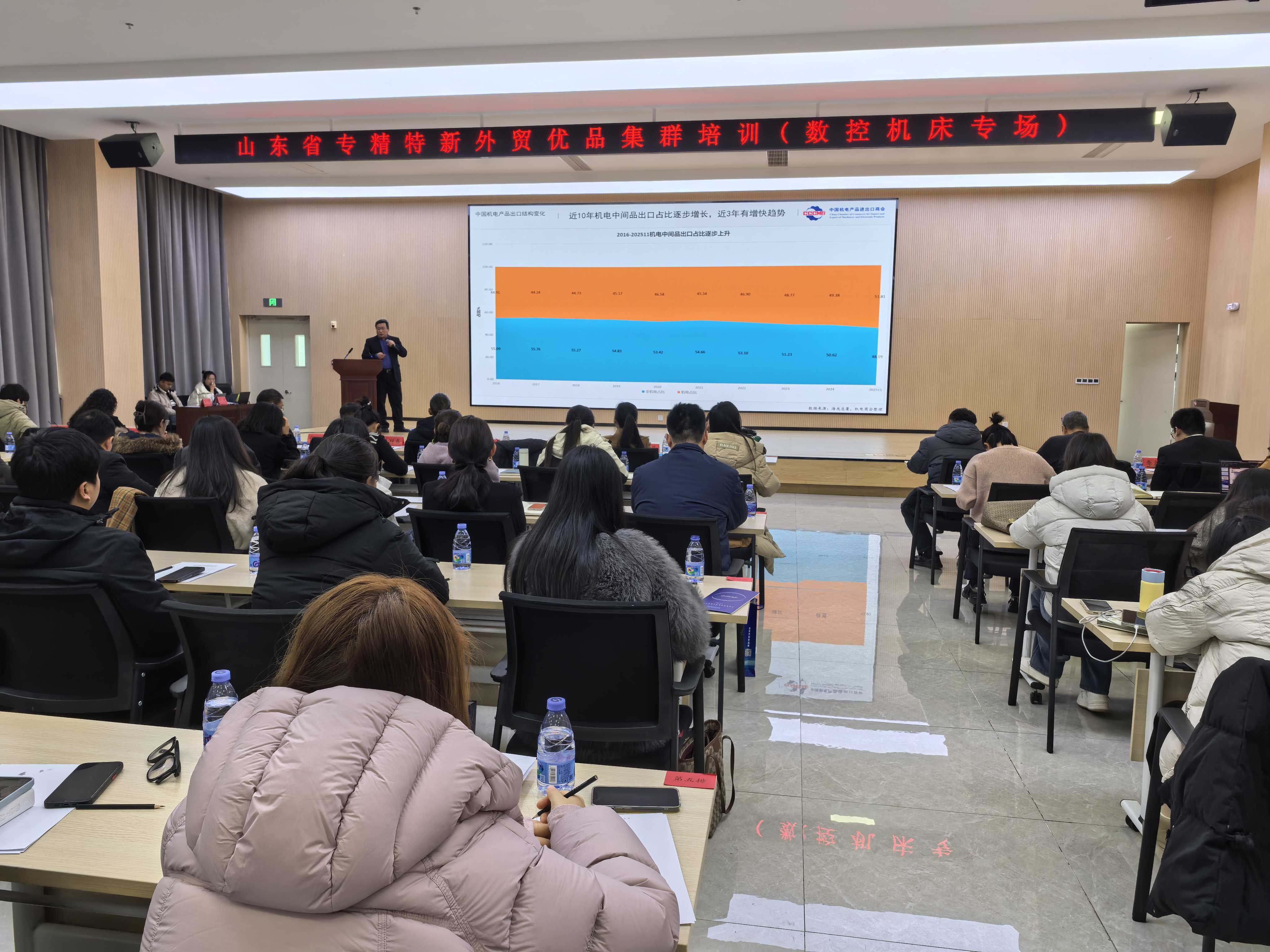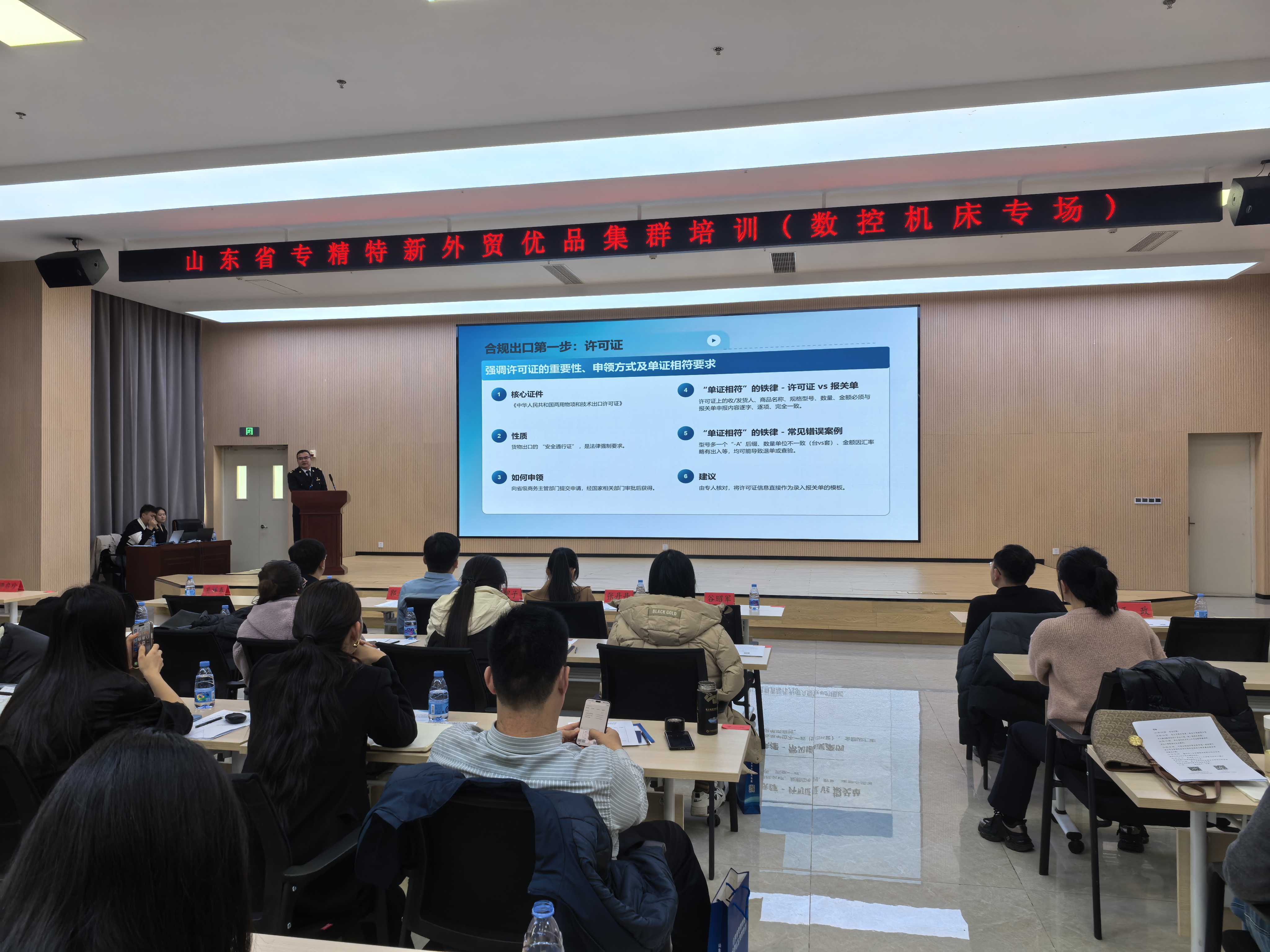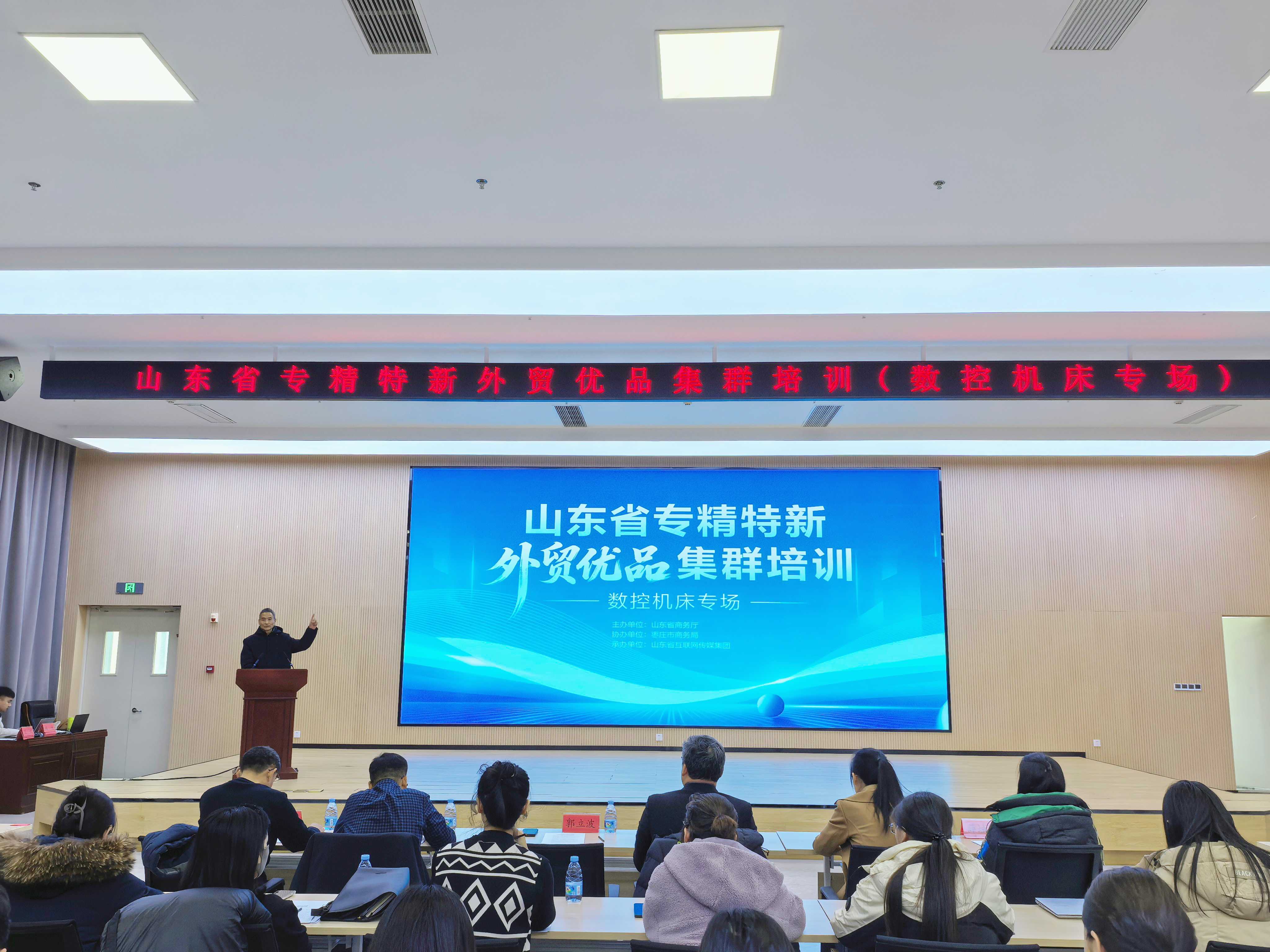2月4日,由山东省商务厅主办的全省专精特新外贸优品集群(数控机床)专场培训在滕州顺利举办。此次培训以助力数控机床企业出海拓市为目标,紧扣数控机床行业外贸发展需求,精准对接企业出海痛点,构建了涵盖政策解读、市场开拓、金融支持、实战经验分享的全维度赋能体系。