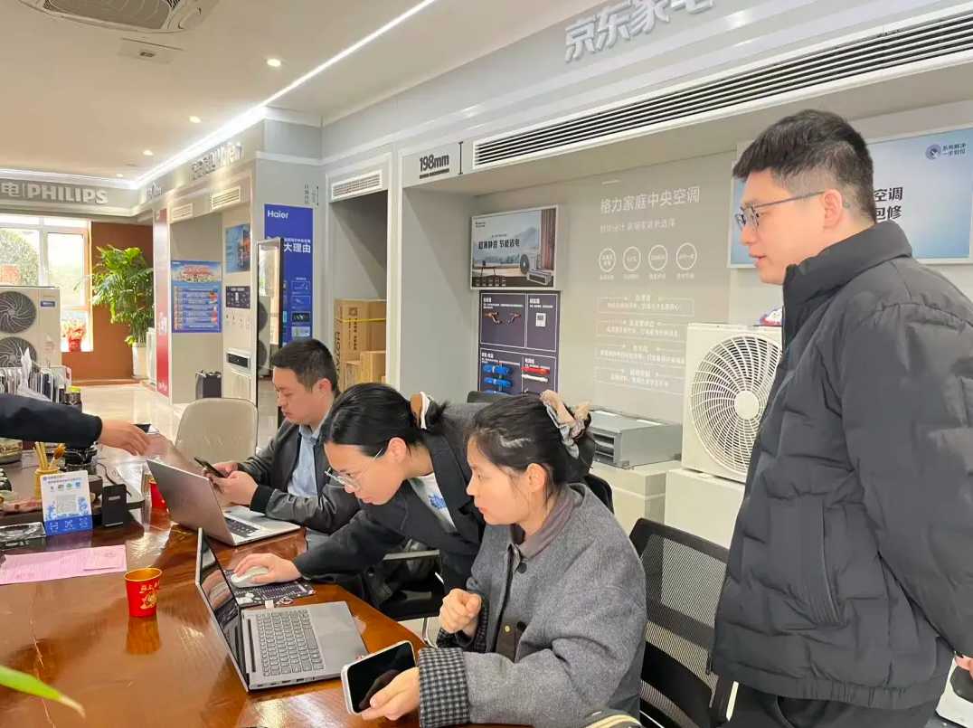 检查组一行先后赴滕州市浩宸商贸有限公司、滕州市艾普乐商贸有限公司、滕州一二三联电器有限公司等参与补贴活动的销售企业,重点核查补贴申领、台账资料、凭证真实性及价格执行等情况。通过查阅资料、现场问询、系统比对数据等方式,细致排查政策执行中的风险点与薄弱环节,现场反馈检查情况,明确整改要求与时限。