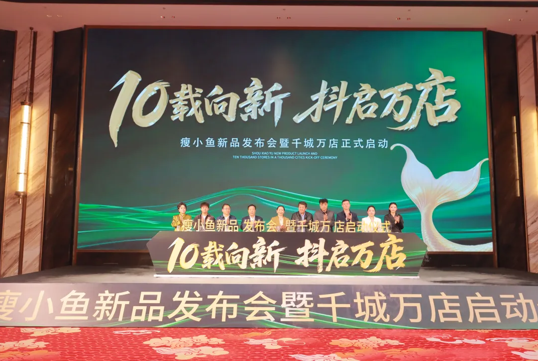 仪式最后,与会领导和嘉宾共同启动瘦小鱼新品发布会暨千城万店活动。