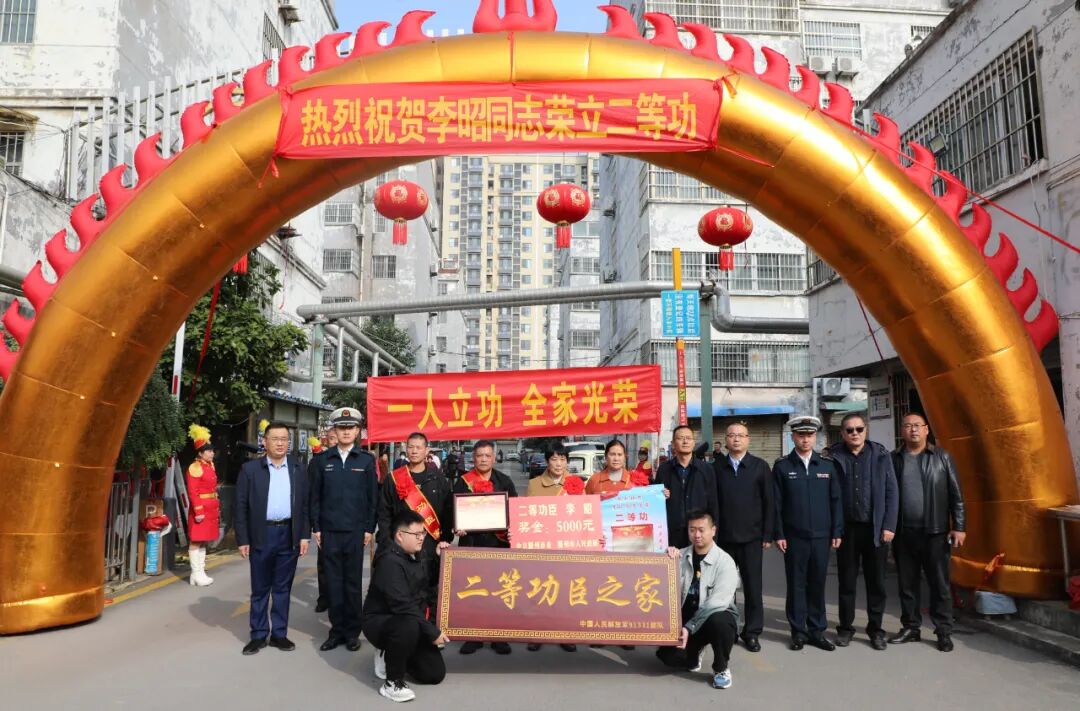 仪式现场,气氛庄重而热烈。市退役军人事务局、市人武部有关领导为李昭父母佩戴红色绶带,将立功喜报、奖励金送到李昭父母的手中,并向他们表示衷心的祝贺。