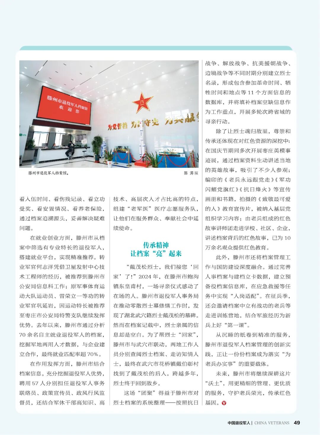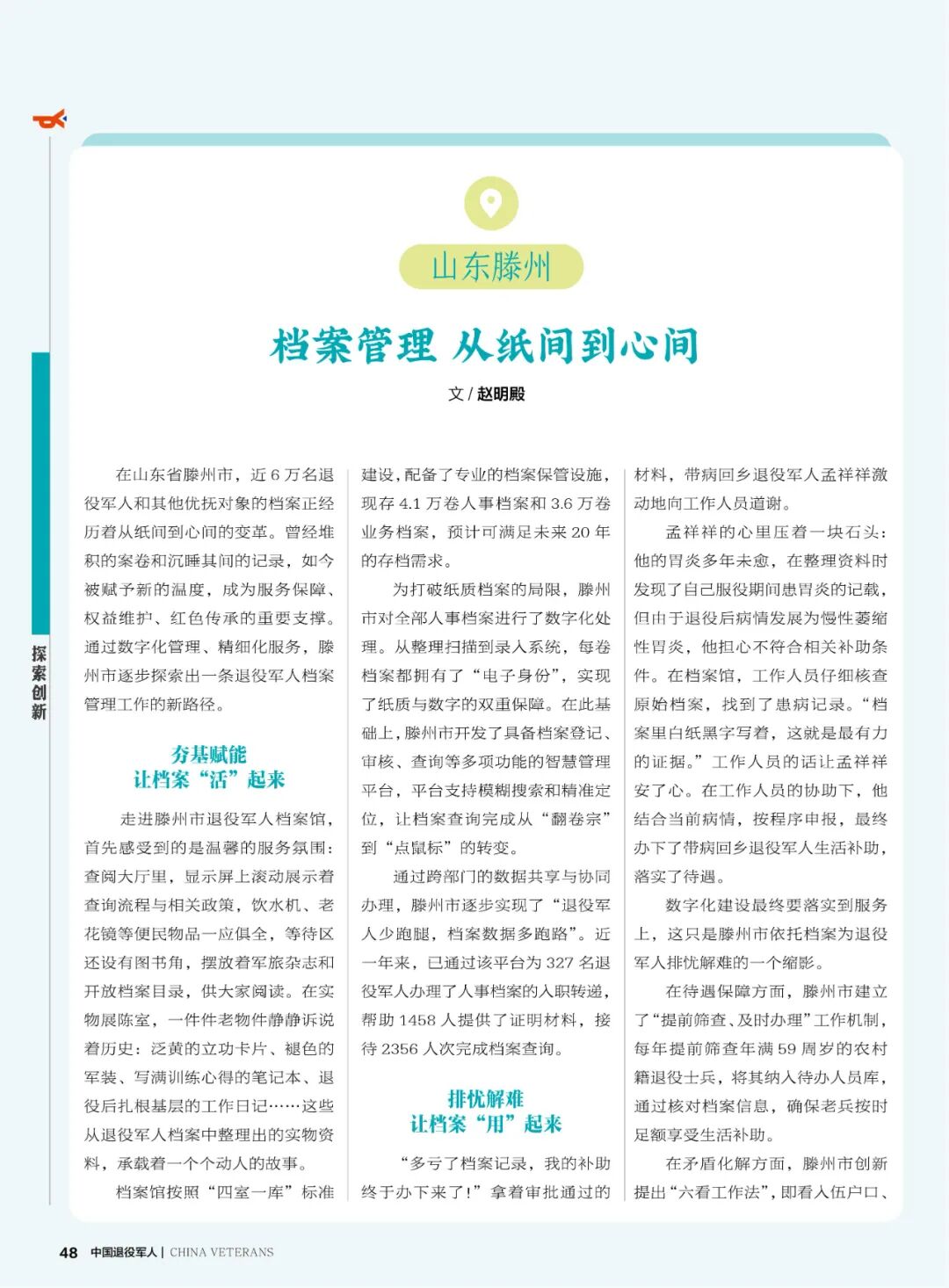 《中国退役军人》2025年第11期刊发我市退役军人档案管理工作