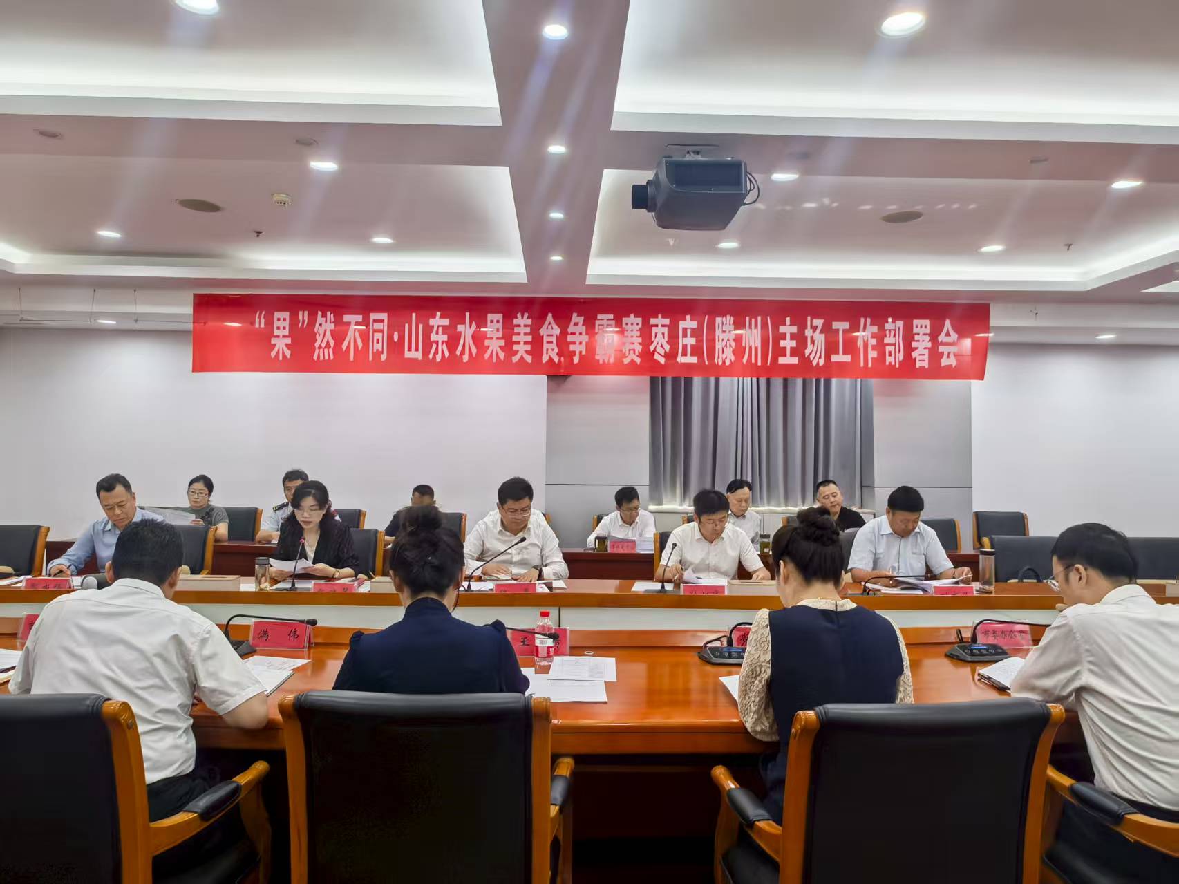 为进一步贯彻落实全省、枣庄市关于赛事组织的部署要求,全力做好“果”然不同·山东水果美食争霸赛枣庄(滕州)主场各项筹备工作,确保主场活动取得圆满成功,9月18日,“果”然不同·山东水果美食争霸赛枣庄(滕州)主场工作部署会议召开。枣庄市文化和旅游局党组成员、市文化市场综合执法支队支队长孙业武,枣庄市文化和旅游局市场管理科及枣庄传媒集团科技服务公司负责人到会指导。滕州市委副书记、统战部部长程亮出席会议并讲话。滕州市有关市直部门、街道、国有企业负责人参加会议。会议由滕州市委常委、宣传部部长张晓翠主持。