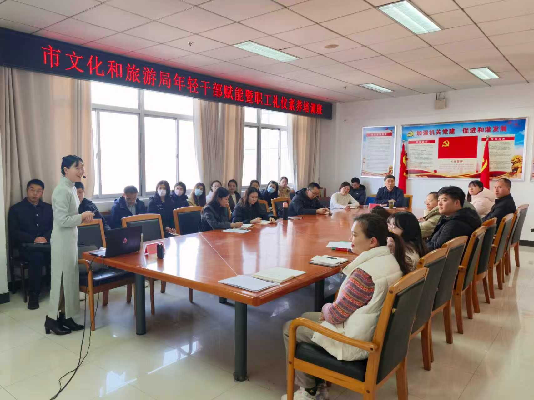 为全面贯彻落实党的二十大和二十届三中、四中全会精神和习近平总书记关于文化和旅游工作的重要论述,进一步提升文旅系统年轻干部社交礼仪素养,12月17日上午,市文化和旅游局举办年轻干部赋能暨职工礼仪素养培训班,局机关及局属各单位35岁以下年轻干部参加培训。