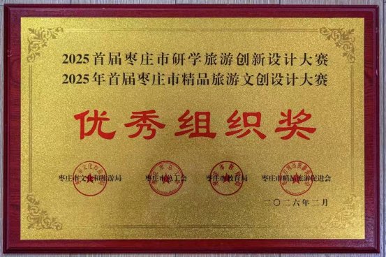 2025首届枣庄市研学旅游创新设计大赛和精品旅游文创设计大赛颁奖典礼于2026年2月8日在新城开元凤鸣山庄二楼怡园厅成功举办。滕州市文化和旅游局、滕州文旅发展集团有限公司双双斩获大赛优秀组织奖,充分彰显了滕州在研学旅游创新发展与旅游文创设计培育方面的扎实成效与组织能力。