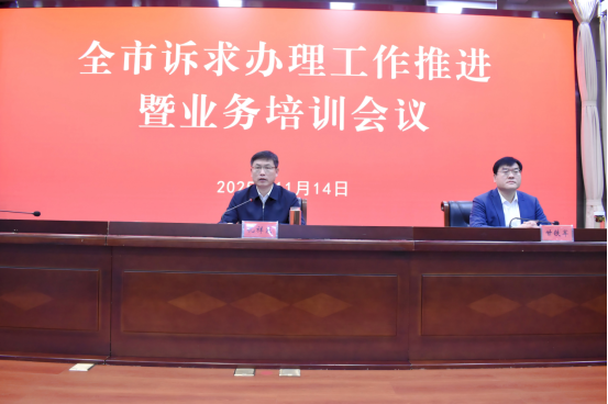 11月14日,全市诉求办理工作推进暨业务培训会议召开。市委常委、政法委书记孔祥东主持会议并讲话,市综治服务中心(市市民诉求办理服务中心、市12345热线服务中心)主任甘铁军,各镇街分管负责同志、业务主管,相关市直部门、市属国有企业分管负责同志、业务主管,市市民诉求办理服务中心全体人员参加会议。