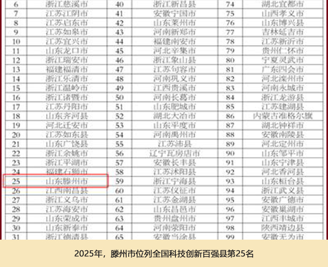 2025年,市科技局认真落实市委、市政府“重点工作集中攻坚年”和“一扩两新”行动部署要求,聚焦在创新能力提升上攻坚突破,力推五大创新举措,盯紧重点任务,狠抓工作落实,全市科技工作稳中有进,支撑工业经济高质量发展能力显著增强。我市连续两年位列全国科技创新百强县第25名、山东省第4名。