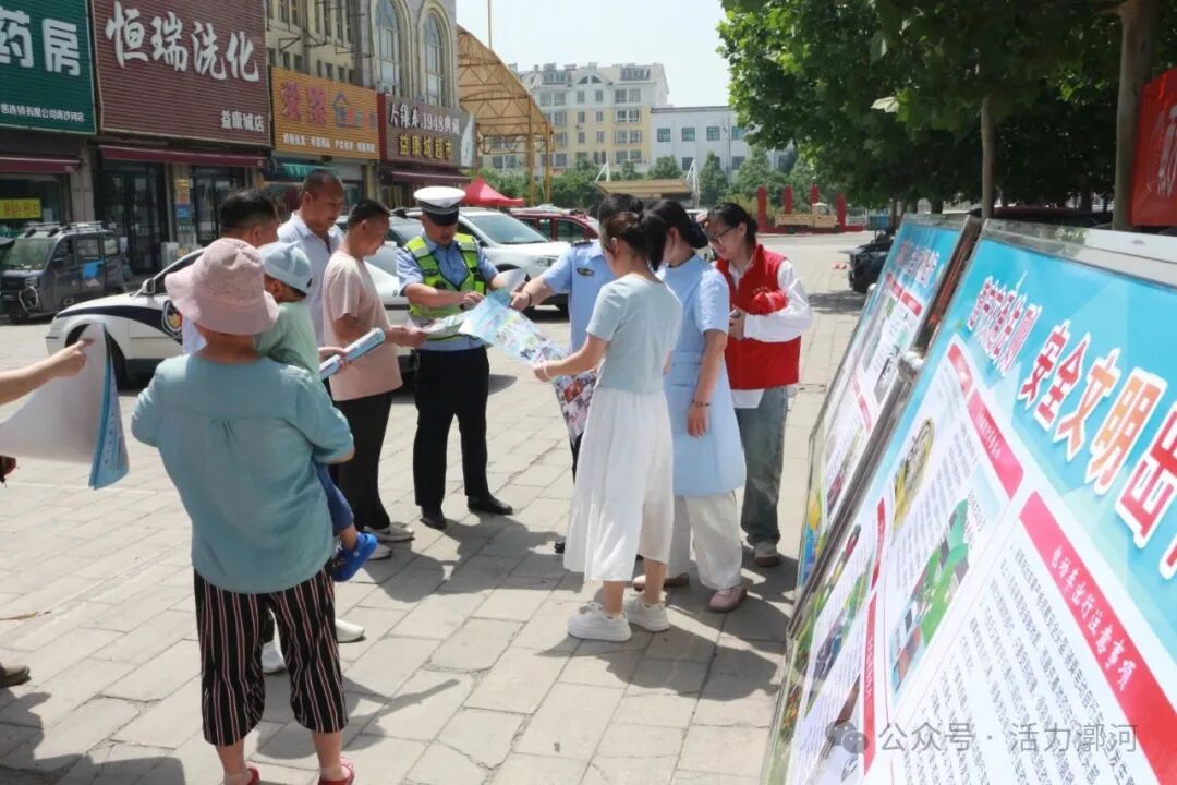 为进一步筑牢辖区群众交通安全防线,全力打造文明有序、安全畅通的道路交通环境,5月19日,南沙河镇交通岗、交警墨子湖中队、交通局南沙河执法中队、新时代文明实践所、妇联等部门联合开展“文明交通 安全出行”交通安全宣传活动。南沙河镇党委委员、武装部长、宣传委员陈涛,便民和公共文化服务中心主任邱伟参加活动。