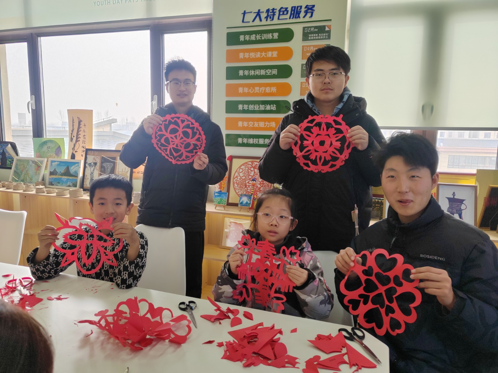 活动中,志愿者首先为大家介绍了剪纸的历史渊源、不同剪纸图案的寓意、剪纸的技巧等等,并为大家发放了红纸和工具。随后,青少年们在志愿者的指导下开始折纸、画稿、裁剪,在一步步的操作中,一张张鲜活灵动、独一无二的剪纸作品逐渐呈现在大家眼前。大家开心地展示着自己的作品,眼中满是骄傲与自豪。