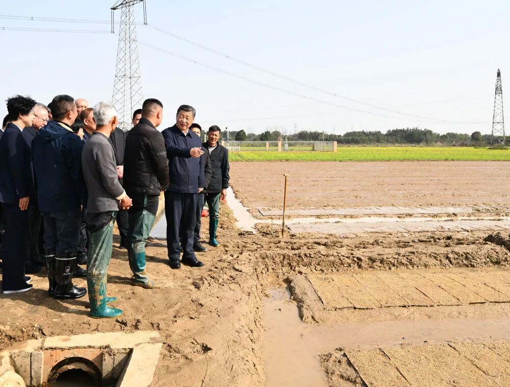 湖南是全国13个粮食主产省之一,水稻播种面积、总产量均居全国第一。当天下午,习近平来到常德市鼎城区谢家铺镇港中坪村,走进当地粮食生产万亩综合示范片区,察看秧苗培育和春耕备耕进展,听取高质量推进农业现代化情况介绍,并同种粮大户、农技人员、基层干部一笔一笔算投入产出账。习近平强调,我国有14亿多人口,粮食安全必须靠我们自己保证,中国人的饭碗应该主要装中国粮。要建设好高标准农田,推行适度规模经营,加强政策支持和示范引领,加大良种、良机、良法推广力度,在精耕细作上下功夫,进一步把粮食单产和品质提上去,让种粮也能够致富,进而吸引更多农户参与发展现代化大农业,真正把中国特色农业现代化之路走稳走扎实。
