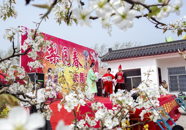 特色主题实践活动,推动文化根基更加坚实。围绕“梨文化+文明”主线,开展四季特色活动:春季“梨花节・文明行”,组织志愿服务、环境整治等实践活动;夏季“梨园课堂”,开展农业技术培训、法治宣讲;秋季“丰收节・传美德”,评选“诚信经营”“梨王”等典型;冬季“暖冬行动”,依托实践站开展敬老爱老、扶弱助残服务。同时,以项目化模式推进摄影大赛、广场舞比赛、送戏下乡等文化艺术类活动,精准对接全年龄段村民需求。其中,摄影大赛聚焦“薛河梨乡”四季风光与梨园丰收盛景,征集作品涵盖梨花绽放、酥梨采摘、民俗活动等主题,年均吸引镇内外摄影爱好者300余人参与;广场舞比赛联动全镇14个参赛队伍,结合梨乡文化元素编排特色曲目,成为镇域文化活动品牌;送戏下乡活动联合市柳琴剧团与本土文化骨干镇吕剧团,将梨乡故事、乡村振兴成效融入戏曲,年均开展20余场,覆盖村民1万余人次。
