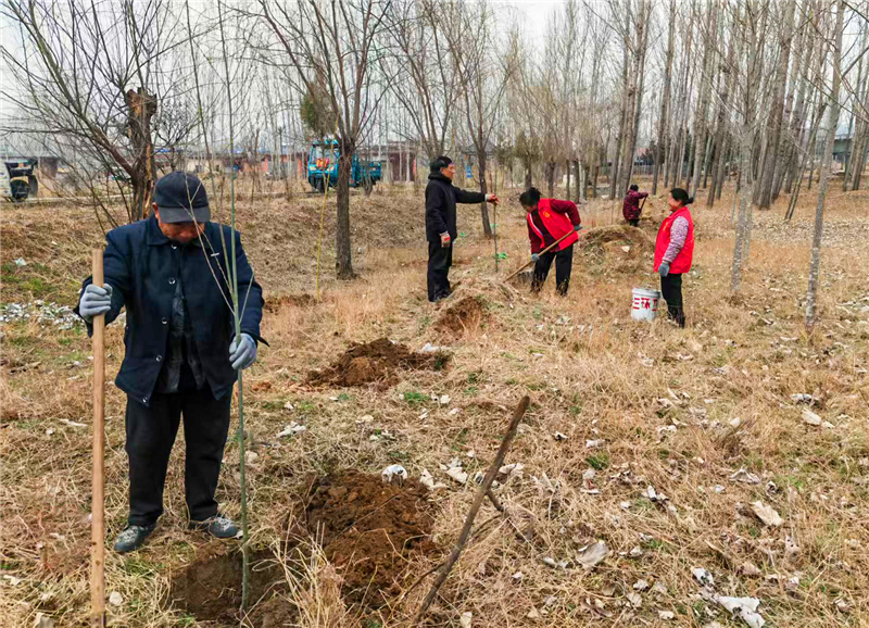 植树现场,大家热情高涨,三两一组,分工协作,从挥锹铲土、扶苗填坑,到提水浇灌、踩实固苗,每一道工序都一丝不苟,严格遵循植树标准,确保栽一棵、活一棵、绿一片。用汗水浇灌希望,用双手装扮家园。在大家的共同努力下,一株株新苗迎风挺立,为初春的乡村增添了勃勃生机。